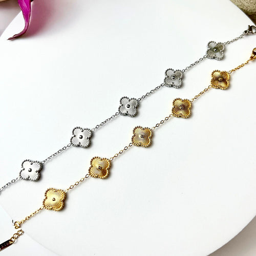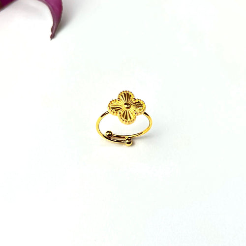 BEATRIZ VII | Anel Ajustável com Trevo Esmaltado em Aço Inoxidável -