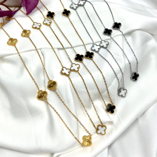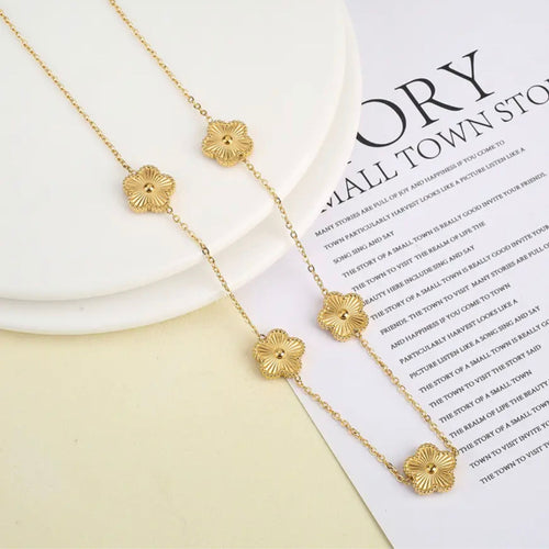 FLOWERS | Colar Estilo Riviera com Flores em Zircónias em Aço Inoxidável -