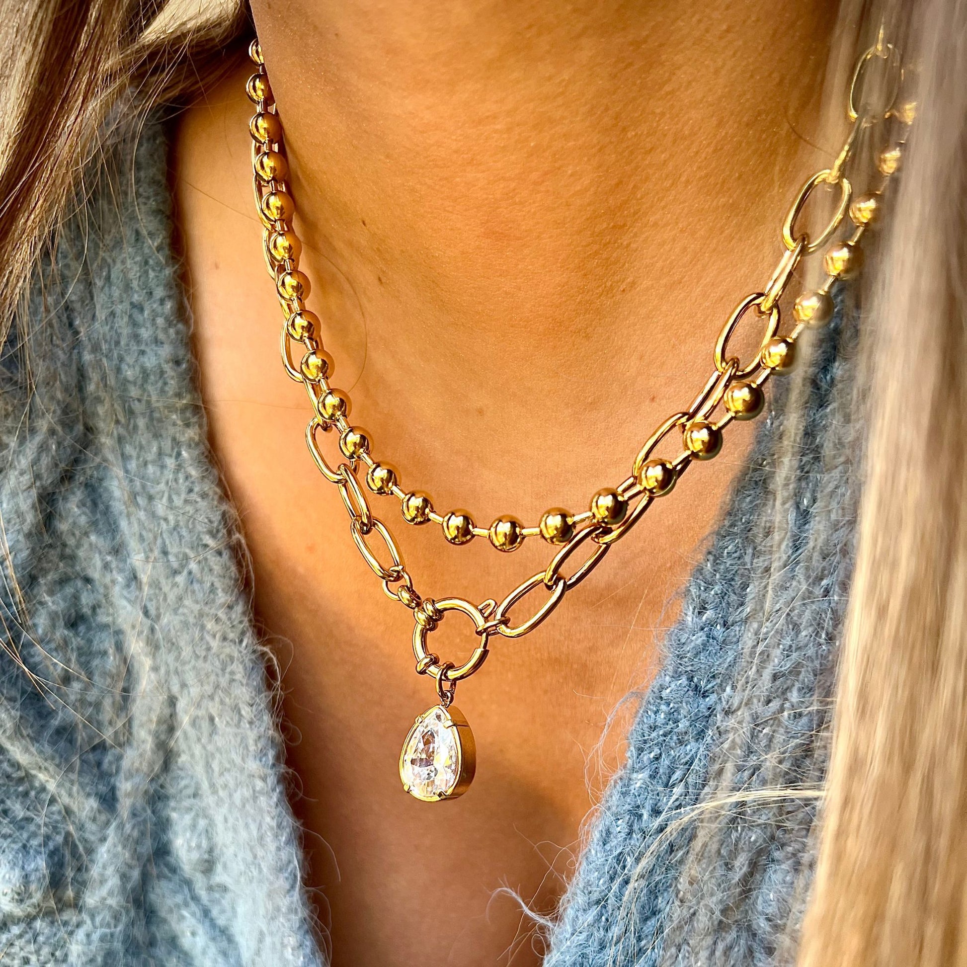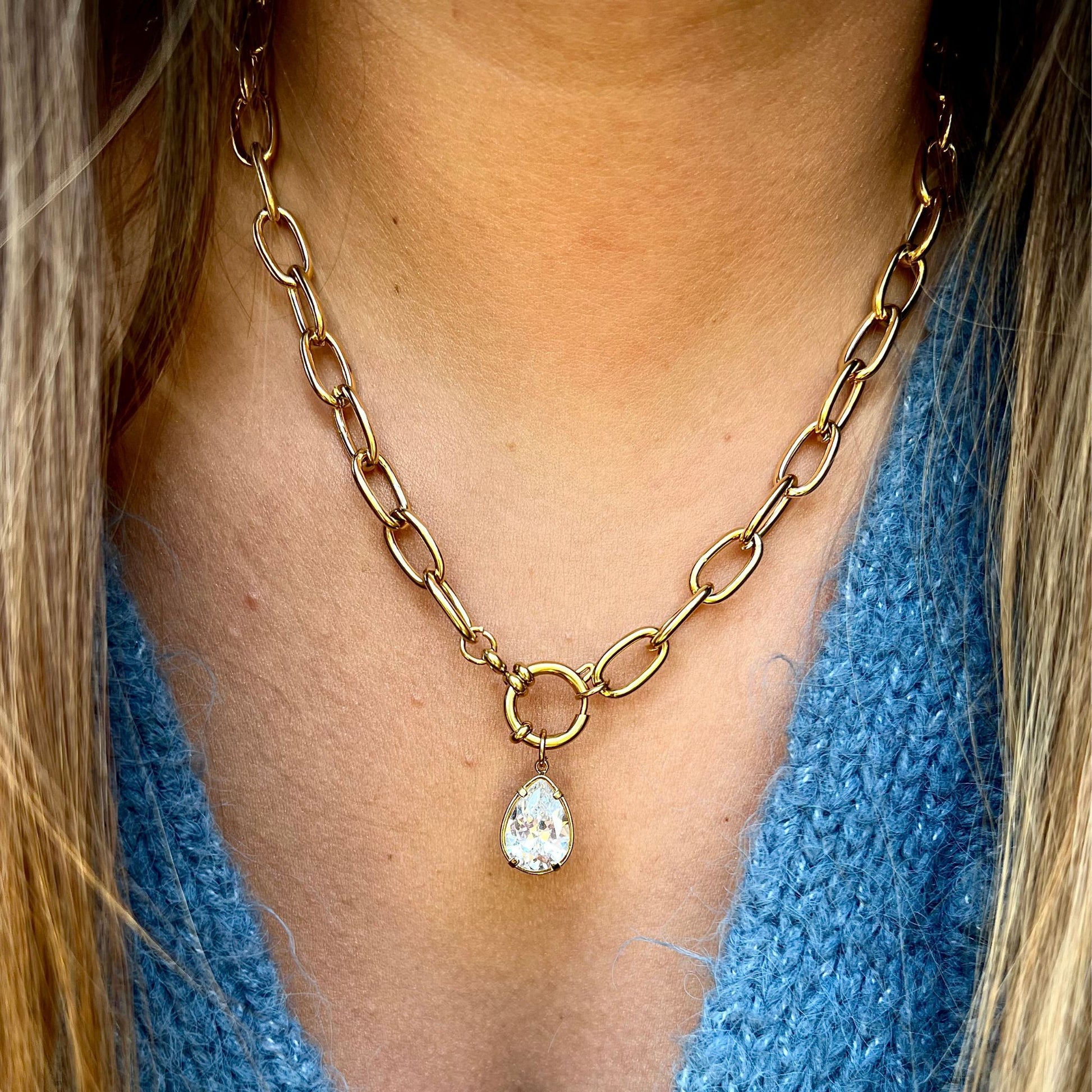 GLOW | Colar com Fecho Frontal e Pendente Lágrima Amovível em Aço Inoxidável