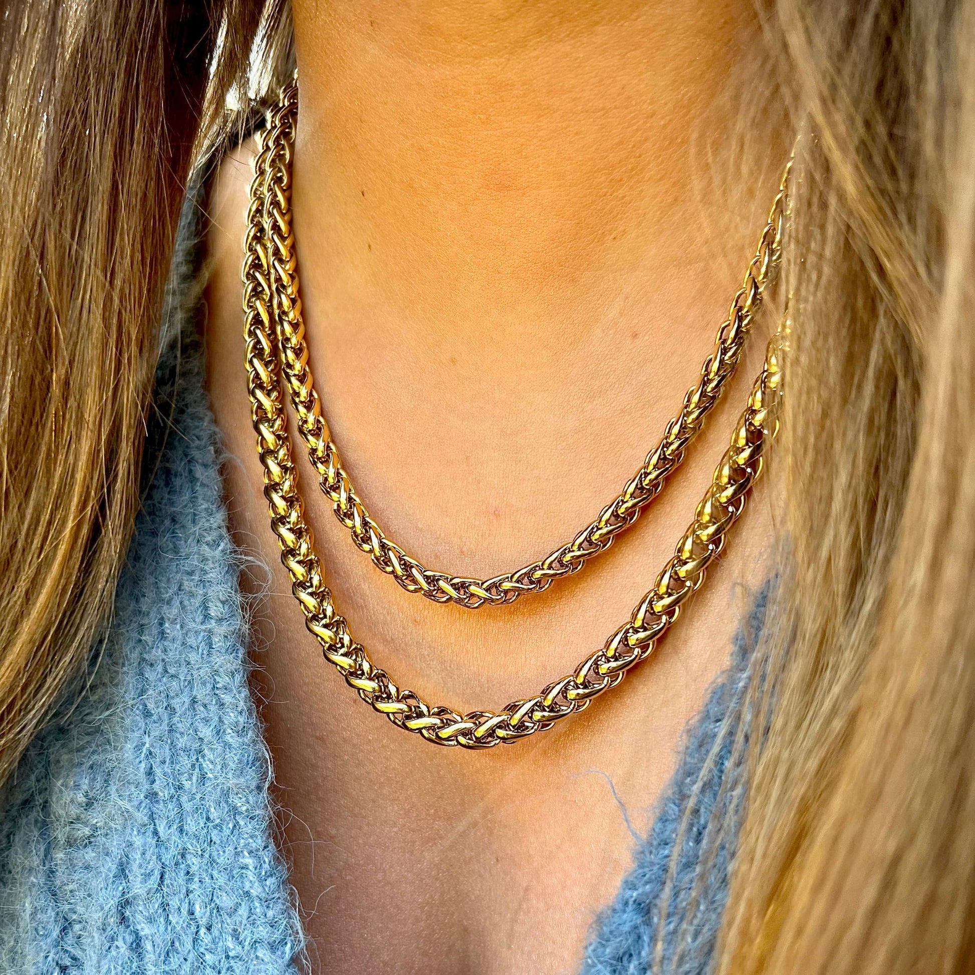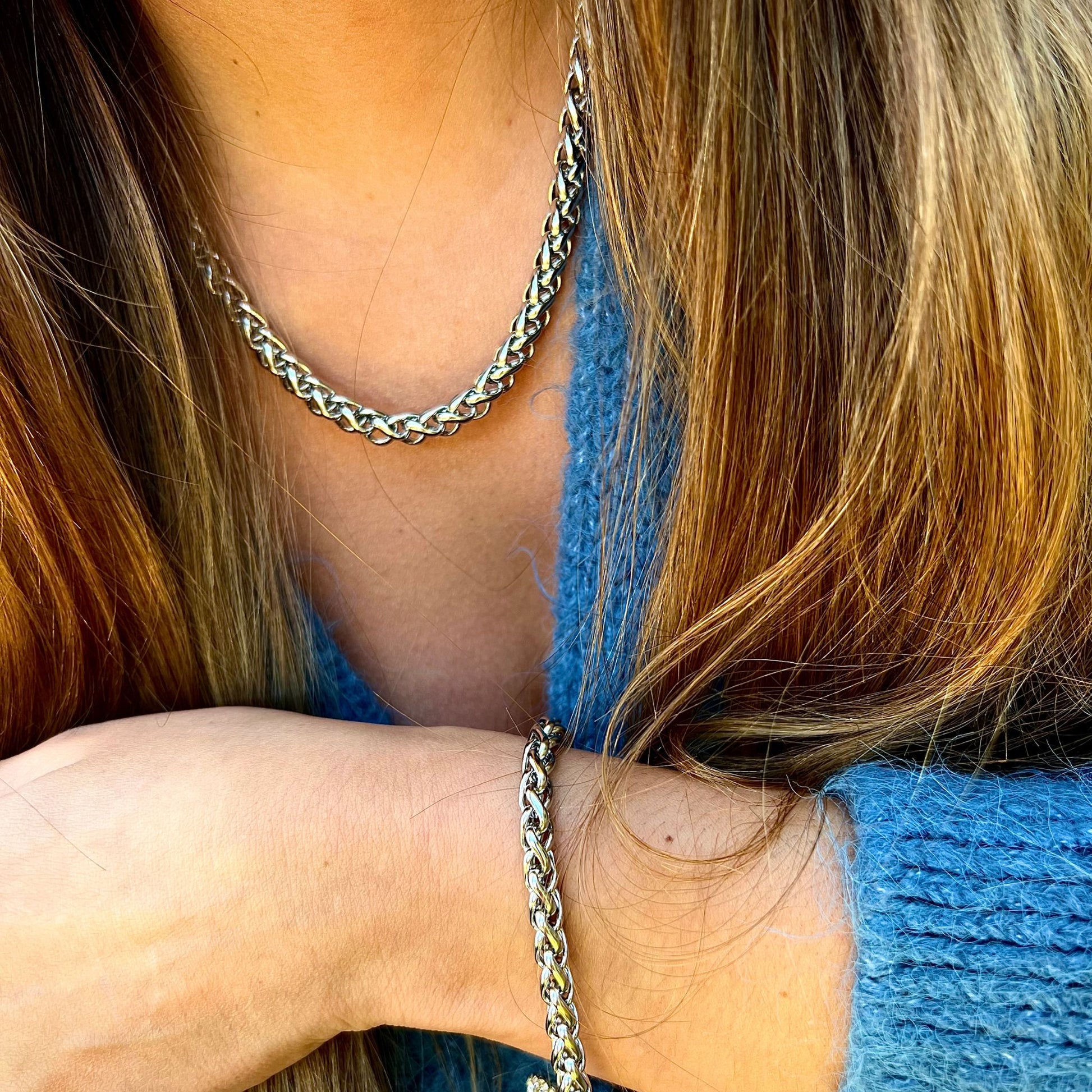 O colar LUNA II apresenta um design entrançado de 5mm, perfeito para quem procura um visual elegante sem abrir mão do conforto. Confeccionado em aço inoxidável, está disponível em dourado e prateado, oferecendo versatilidade para diversas ocasiões. Uma peça sofisticada que complementa tanto looks casuais quanto formais.