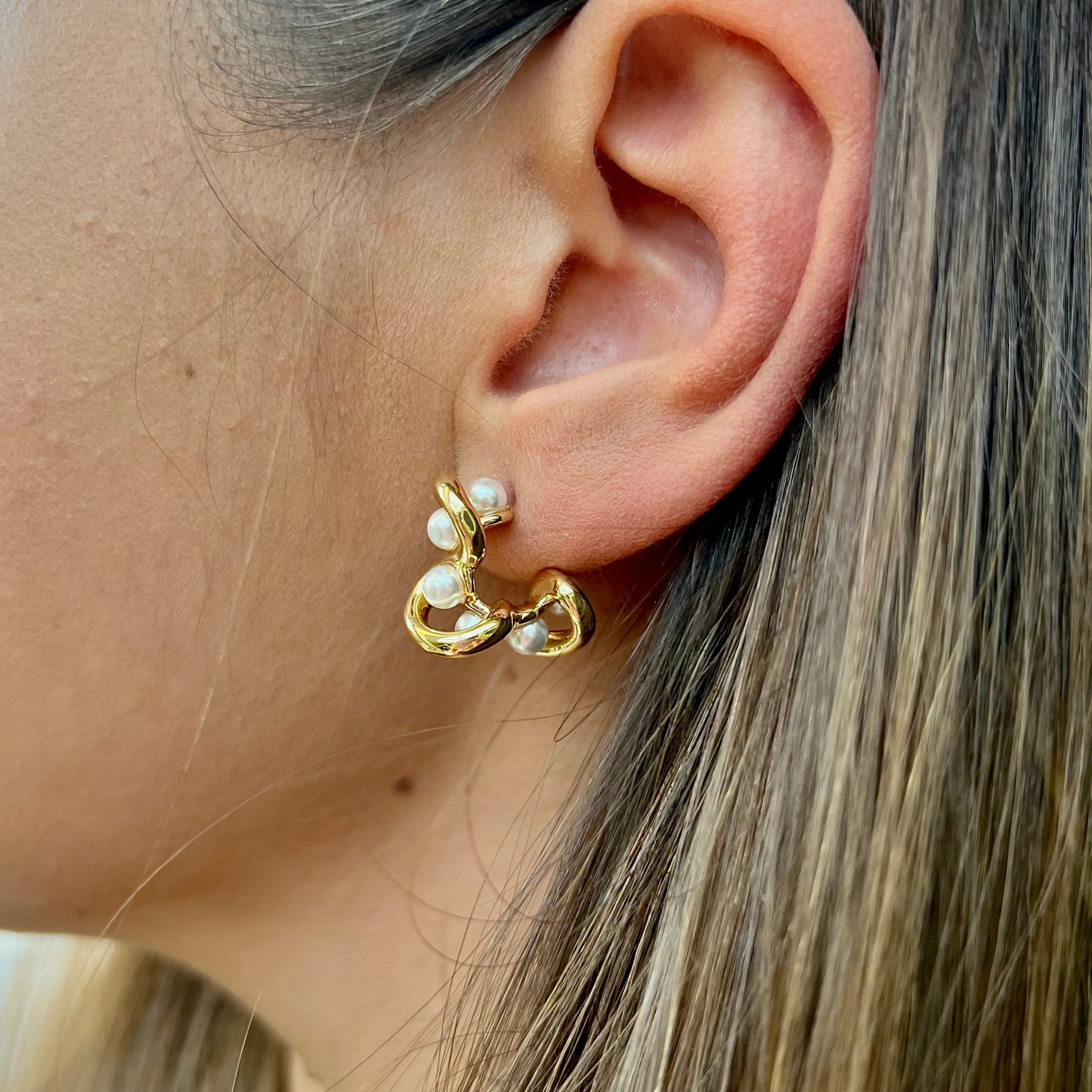 MAEVA | Argola Torcida com Pérolas em Aço Inoxidável