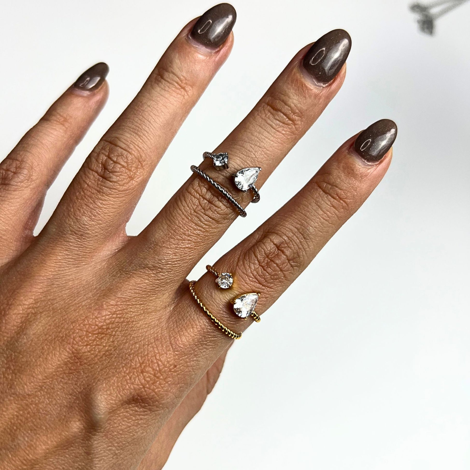 ZENITH II | Anel Duplo Ajustável Com Zircônias em Aço Inoxidável