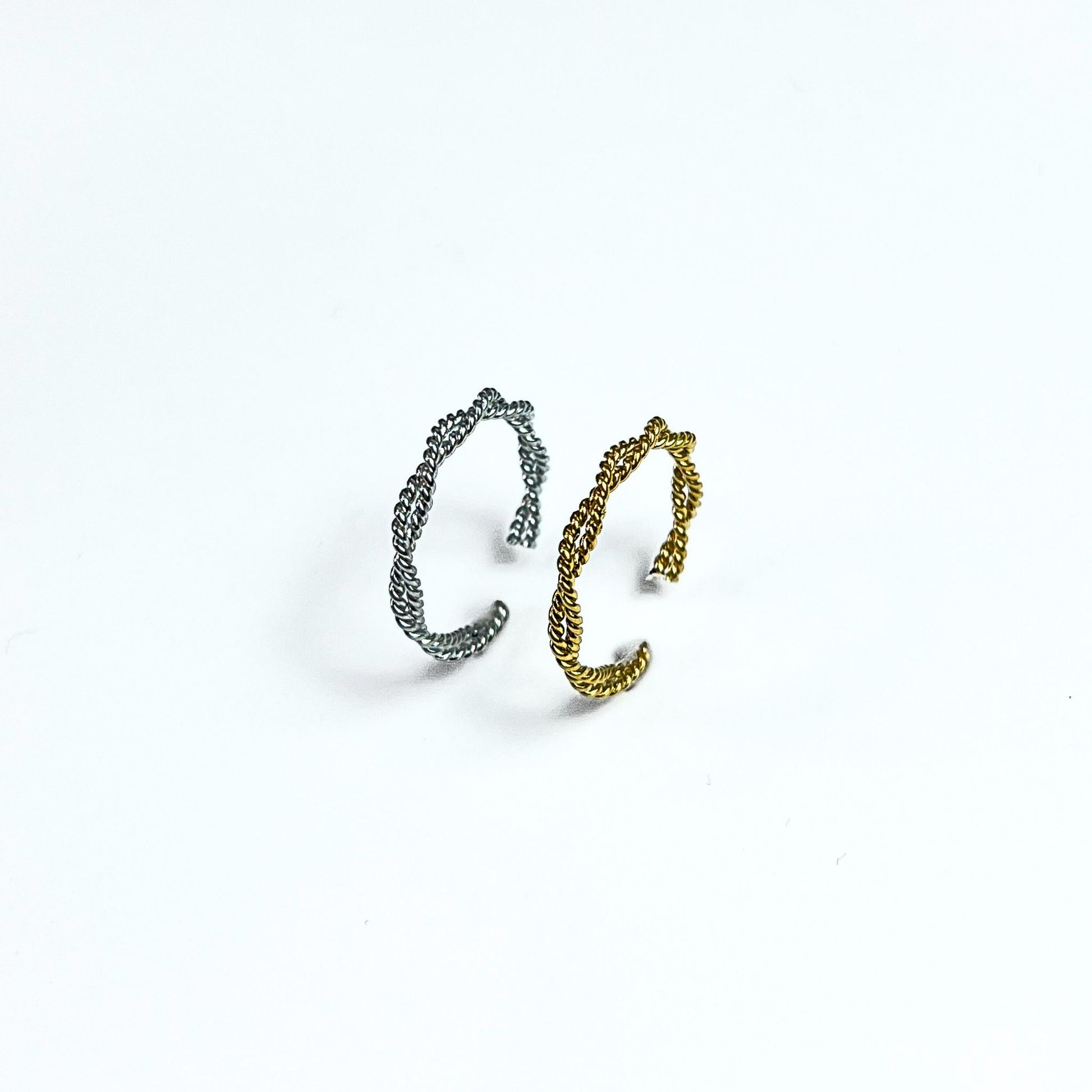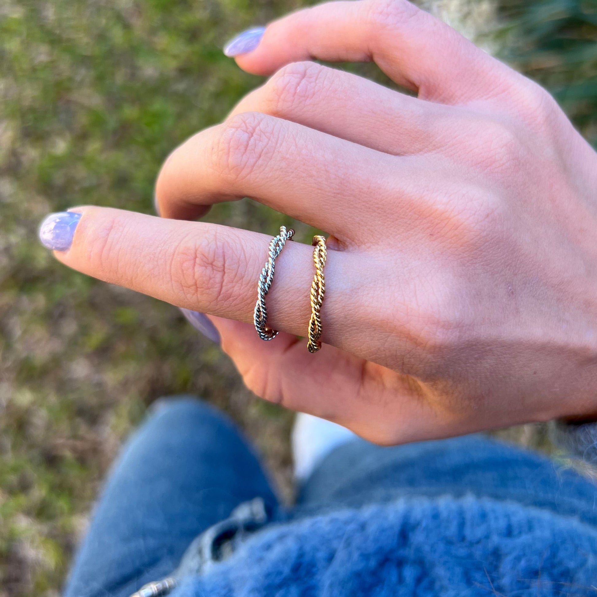 O anel CURLY II apresenta um design torcido sofisticado, confeccionado em aço inoxidável e disponível nas versões dourado e prateado. Ajustável para um encaixe perfeito, esta peça une modernidade e elegância, sendo ideal para complementar qualquer visual com um toque contemporâneo e refinado.