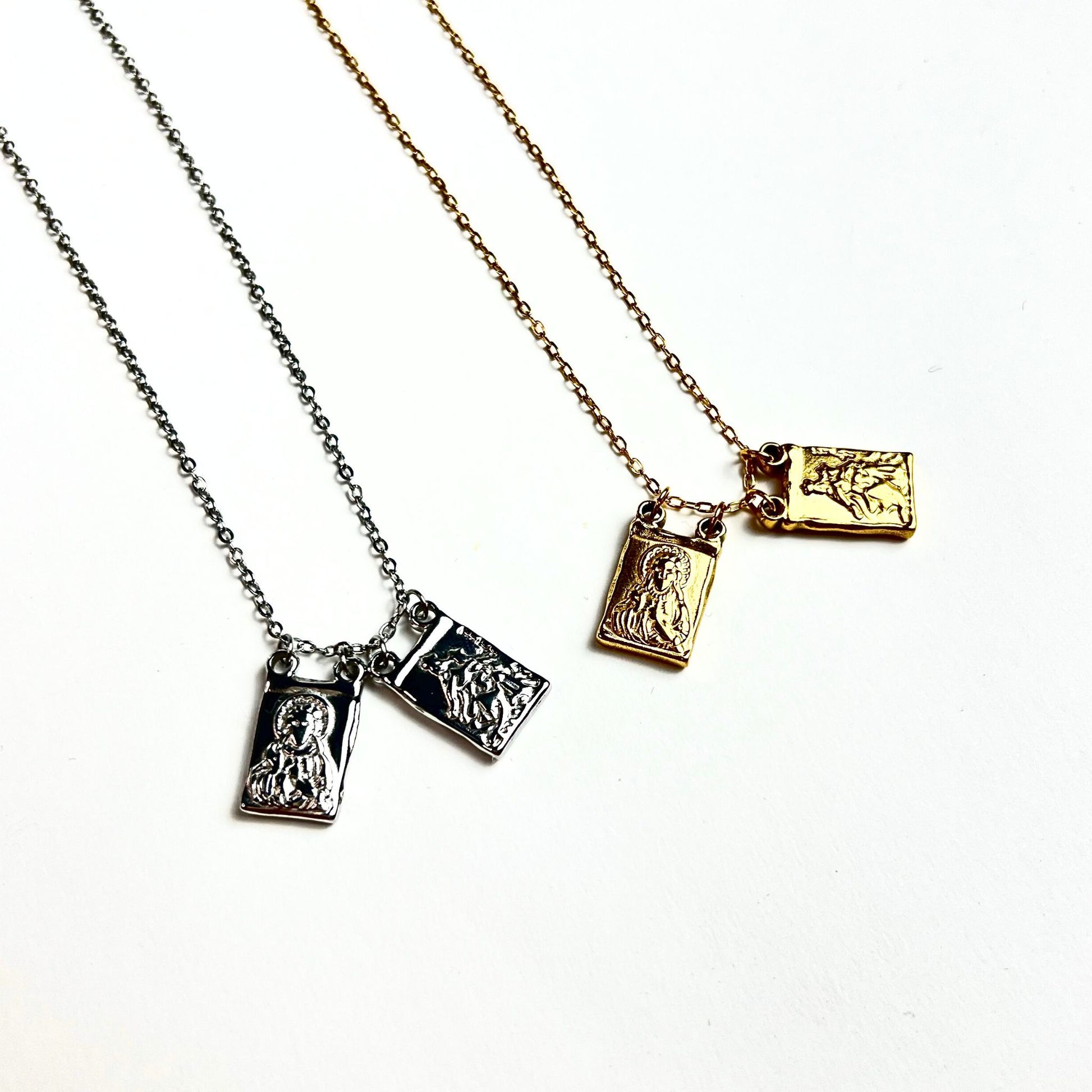 O ESMERALDA é um colar tipo escapulário reinterpretado com um toque moderno e elegante. Com duas medalhas retangulares detalhadas e cheias de significado, esta peça simboliza proteção, fé e ligação espiritual — sempre contigo, todos os dias.