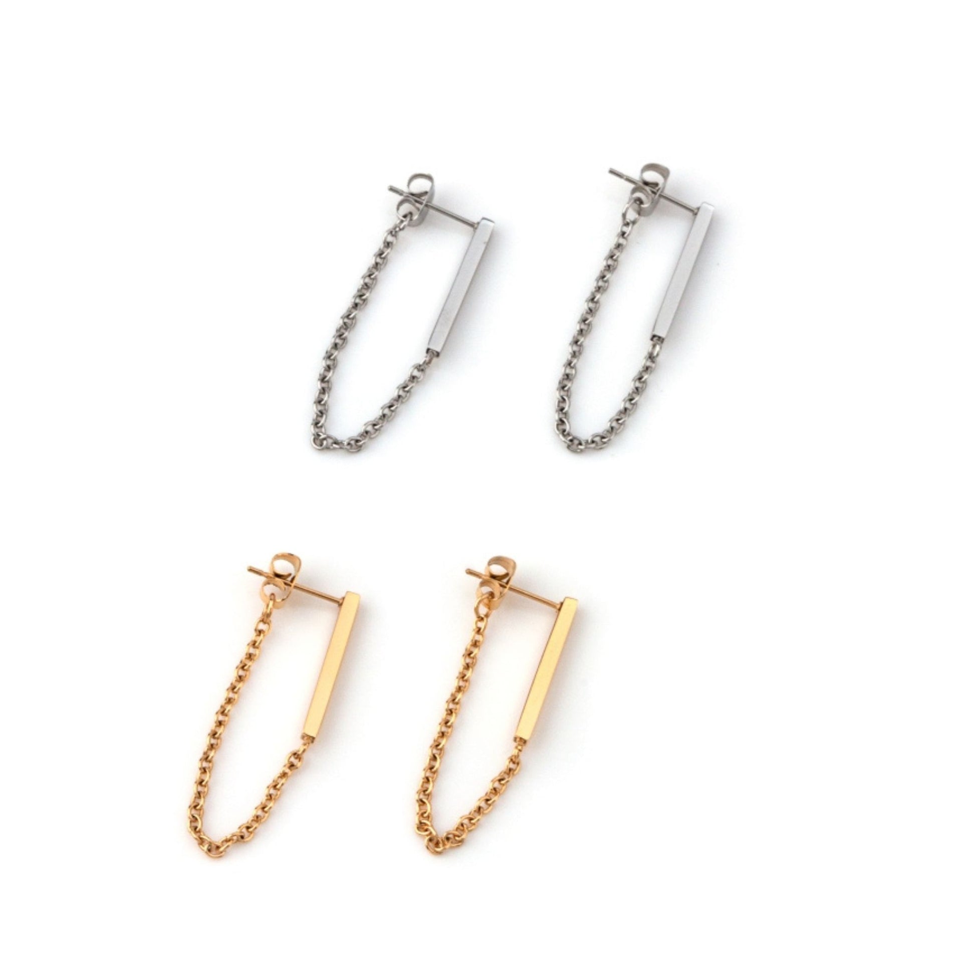 LILA | Brincos Básicos com Corrente em Aço Inoxidável