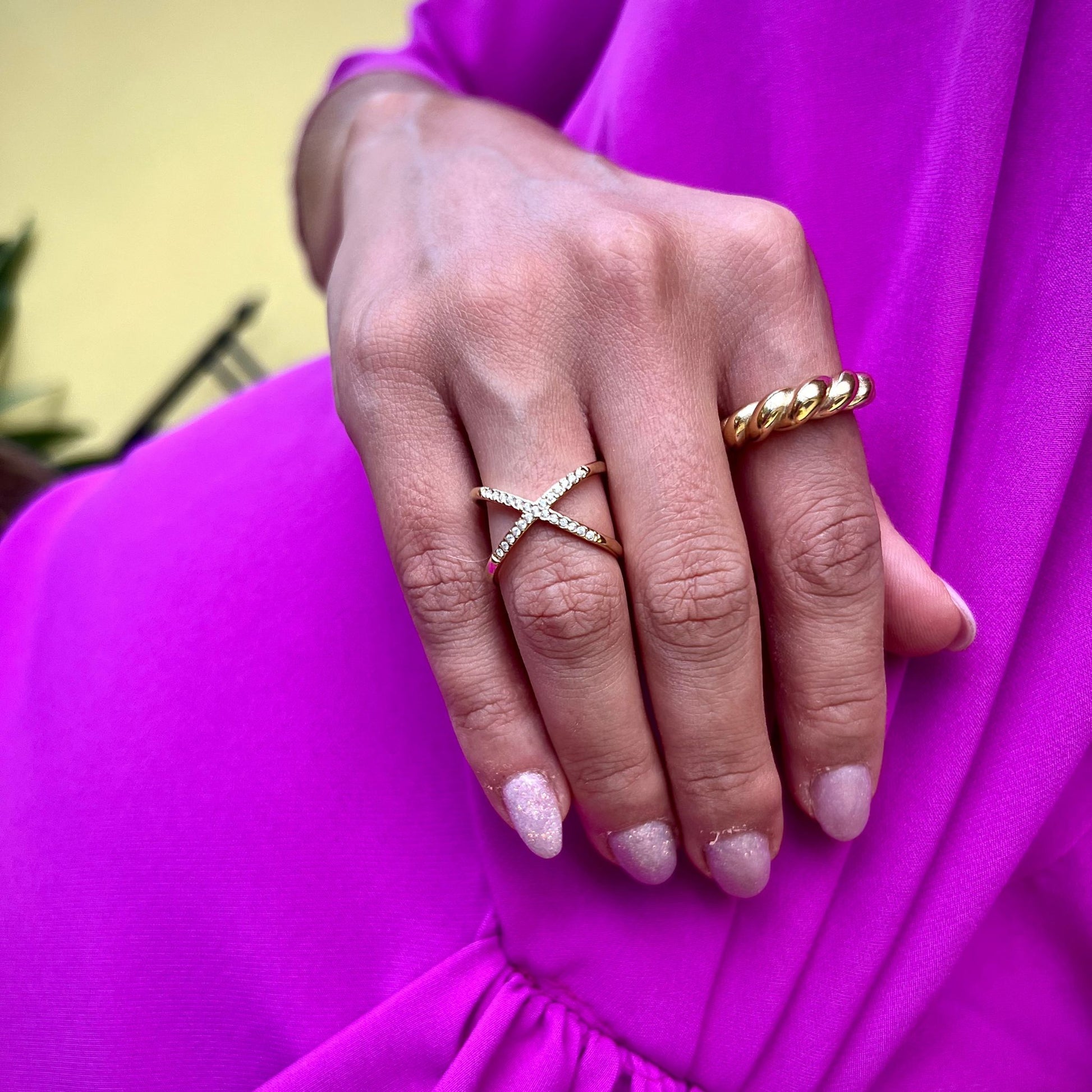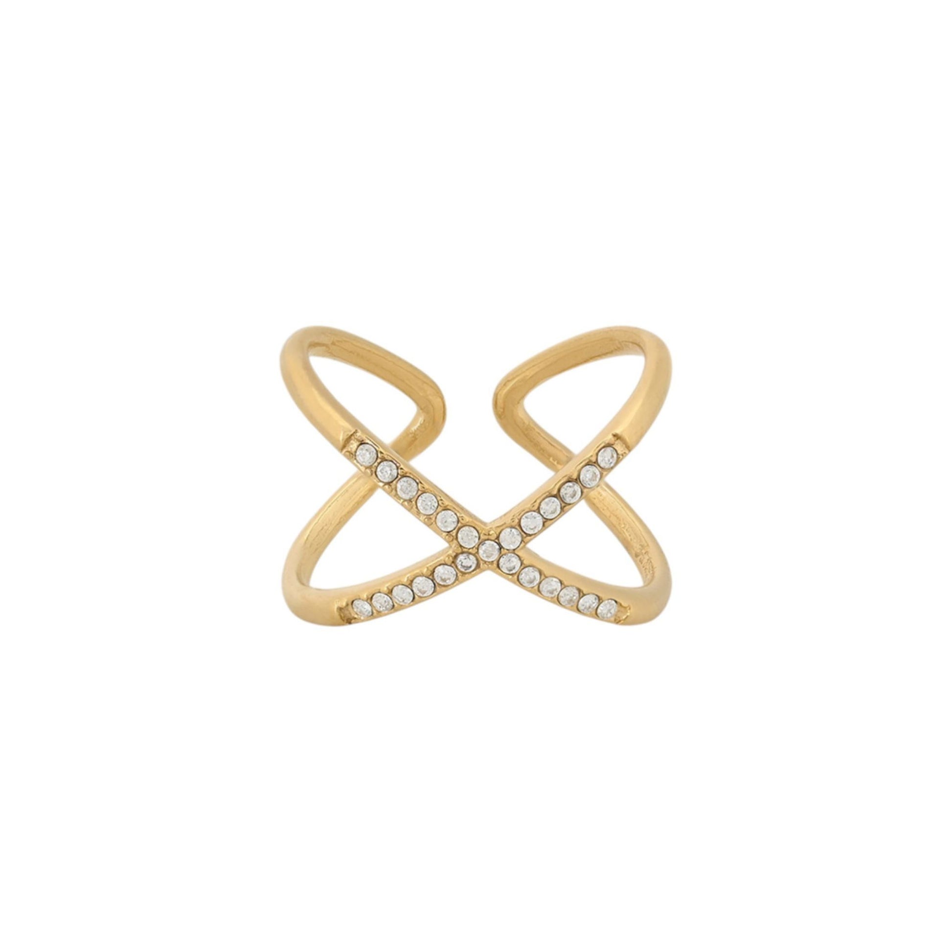 ZING | Anel Ajustável em Cruz e Zircônias em Aço Inox