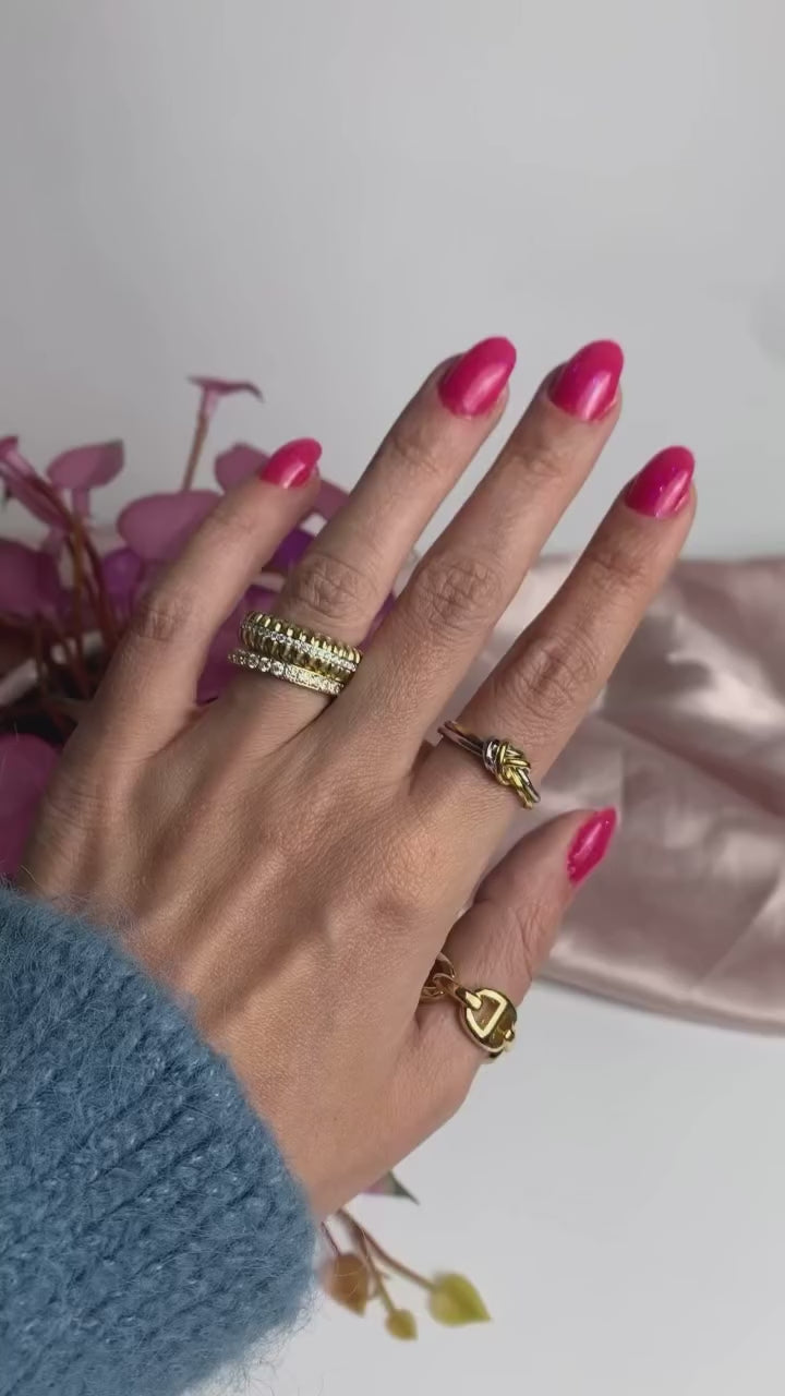 O anel ALIAH combina elegância moderna com um design inspirado em elos estilizados, criando uma peça marcante e sofisticada. Produzido em aço inoxidável hipoalergénico, está disponível em dourado e prateado, garantindo brilho duradouro, resistência e conforto no dia a dia. Um anel versátil, perfeito para usar sozinho ou em combinação com outras peças para um look trendy e atual.