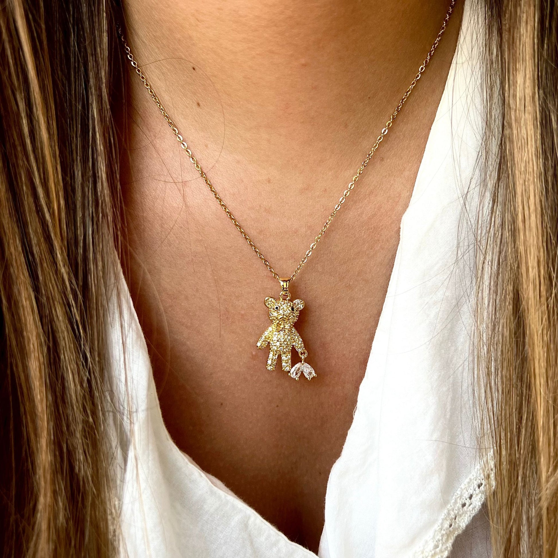 O colar ALIAH é um símbolo de doçura e estilo, com um pendente em forma de ursinho cravejado em zircônias e um delicado coração ao lado. Feito em aço inoxidável dourado, este acessório combina elegância e charme de uma forma única. Perfeito para quem ama peças que expressam ternura e sofisticação, o colar ALIAH é o toque especial que transforma qualquer look em algo inesquecível.