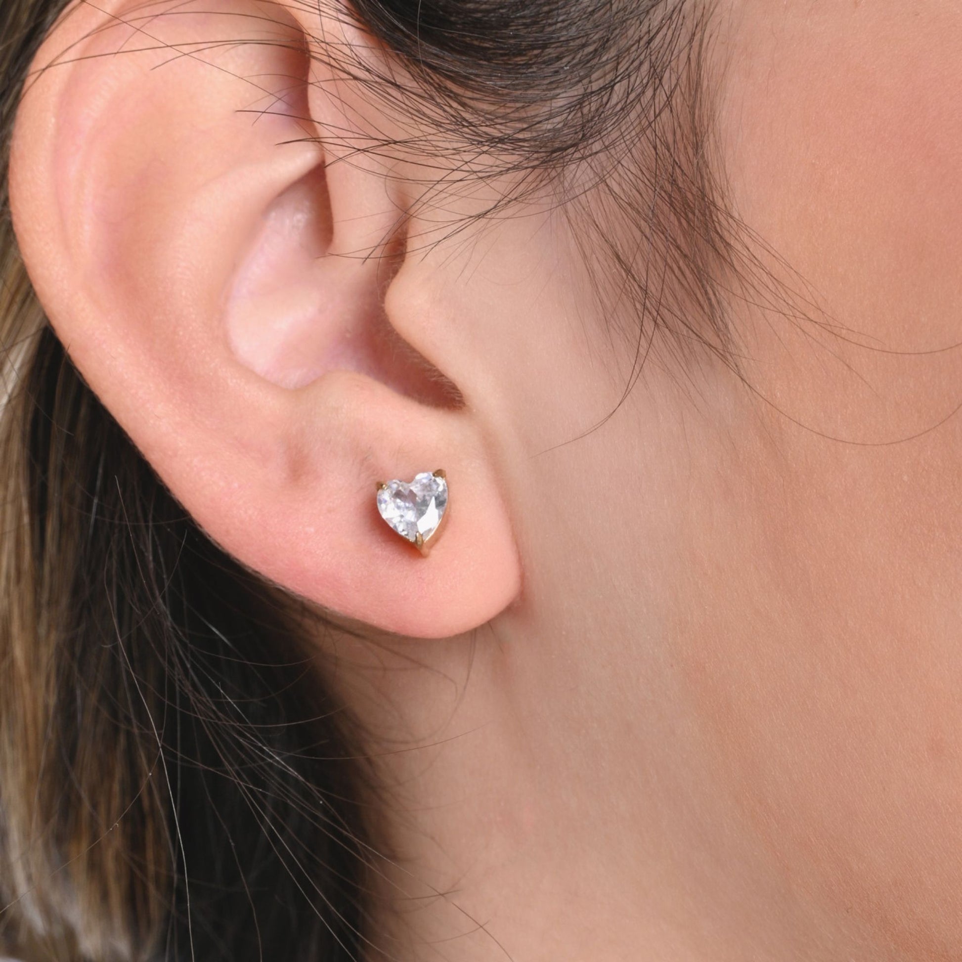 ARMONIA II | Brincos Curtos em Forma de Coração com Zircônia em Aço Inoxidável