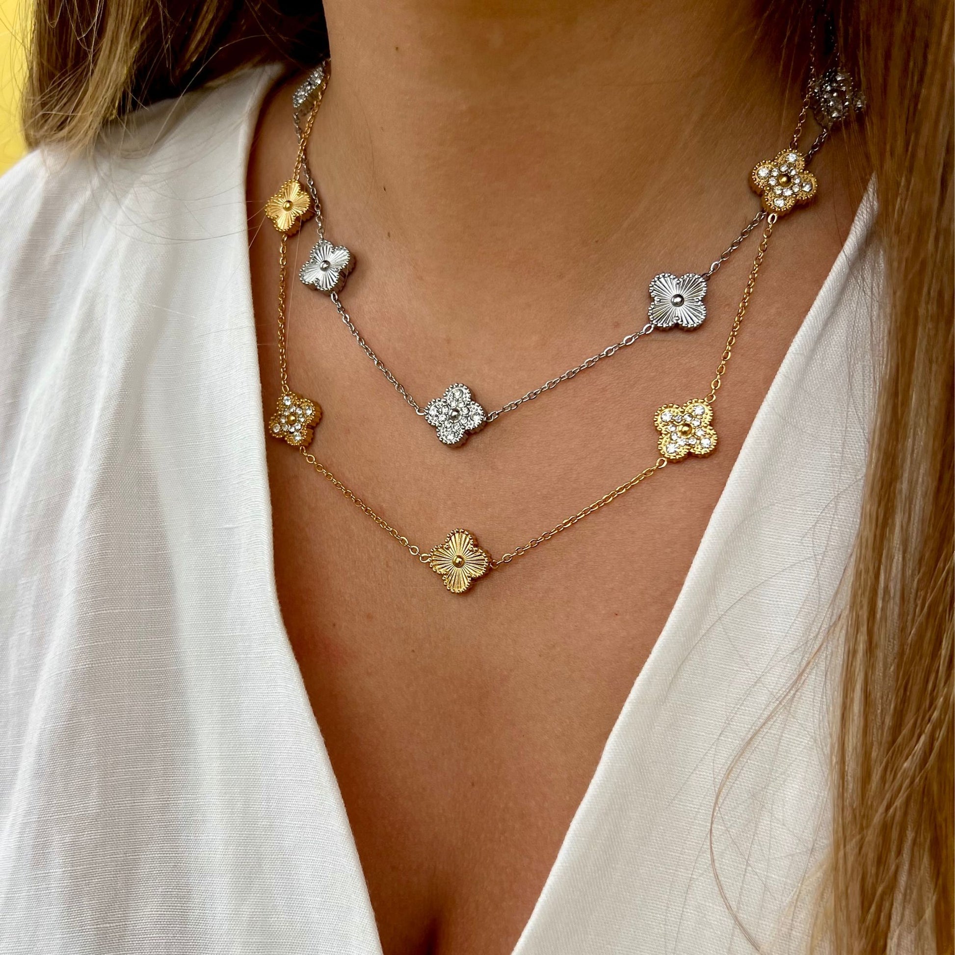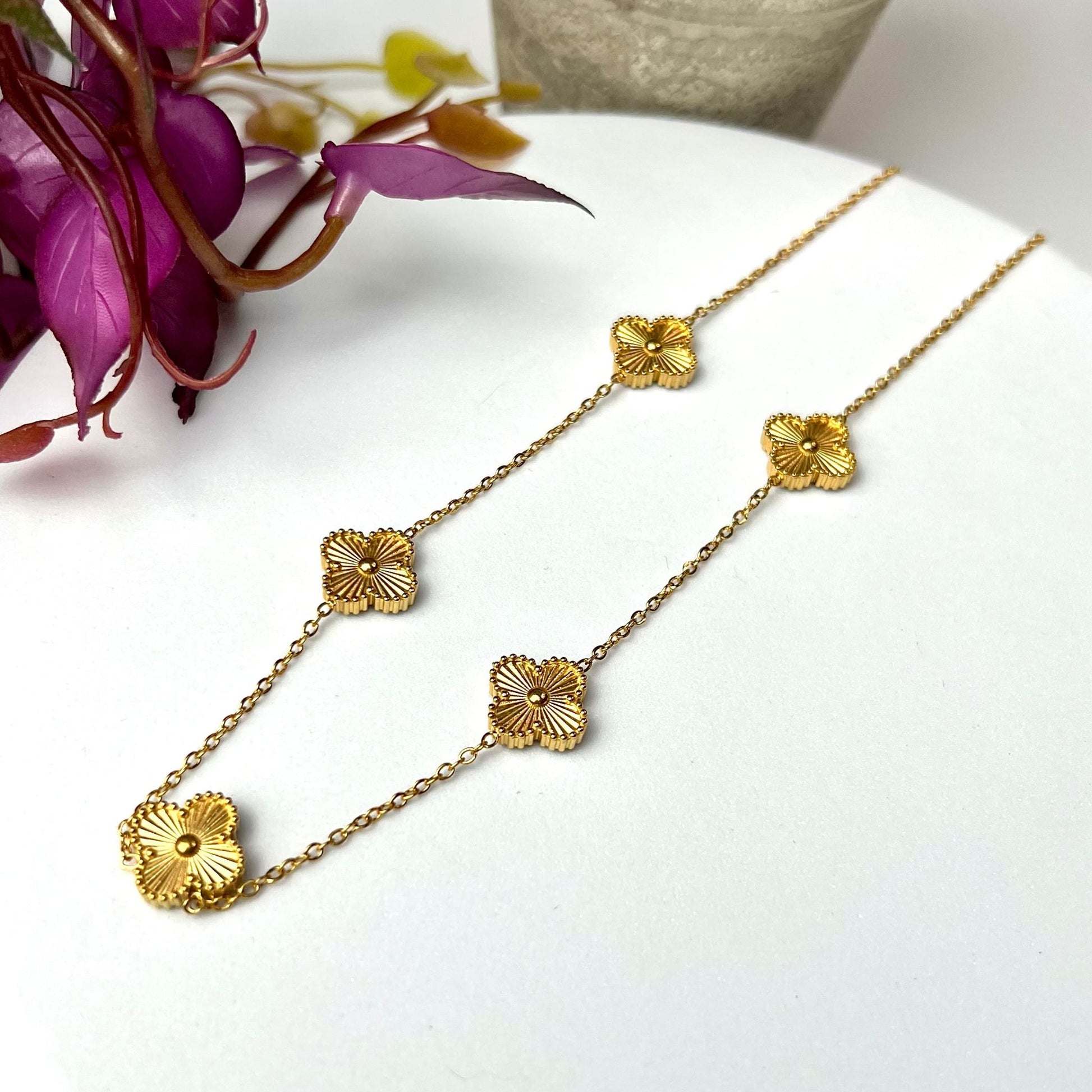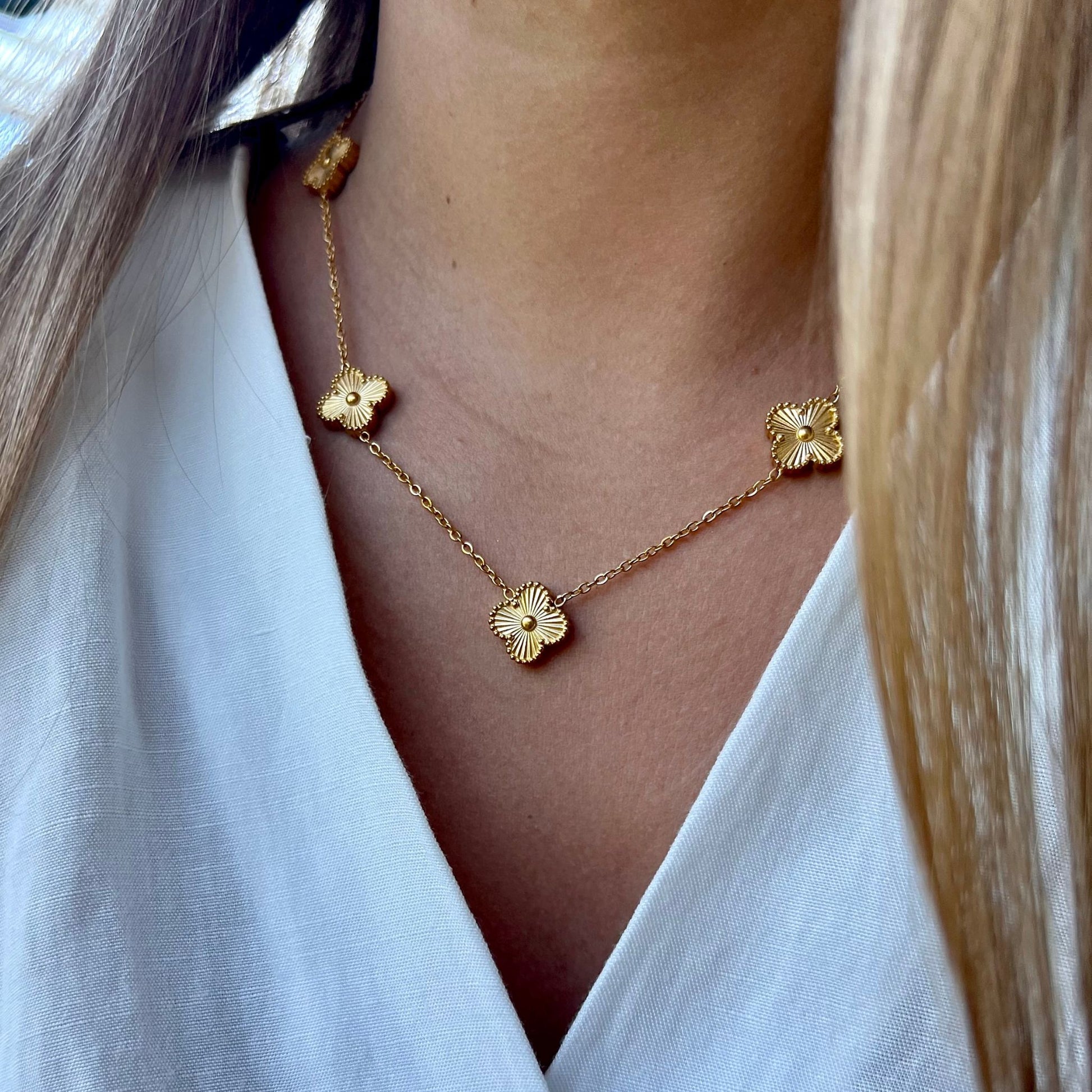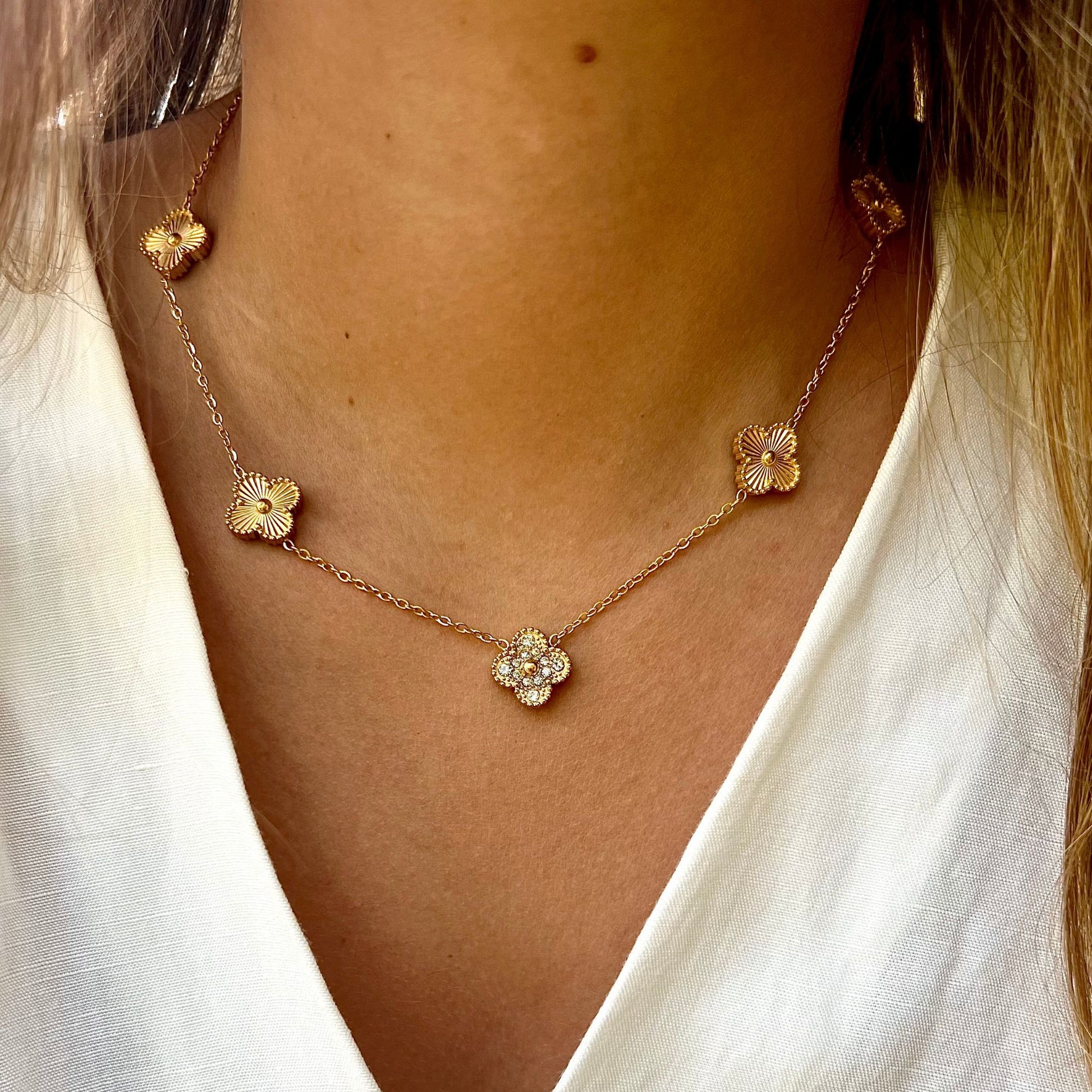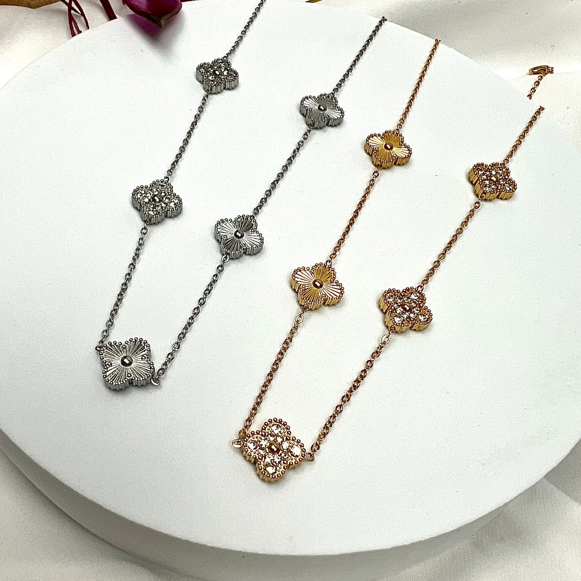 BEATRIZ III | Colar com 5 Trevos Reversível em Aço Inoxidável