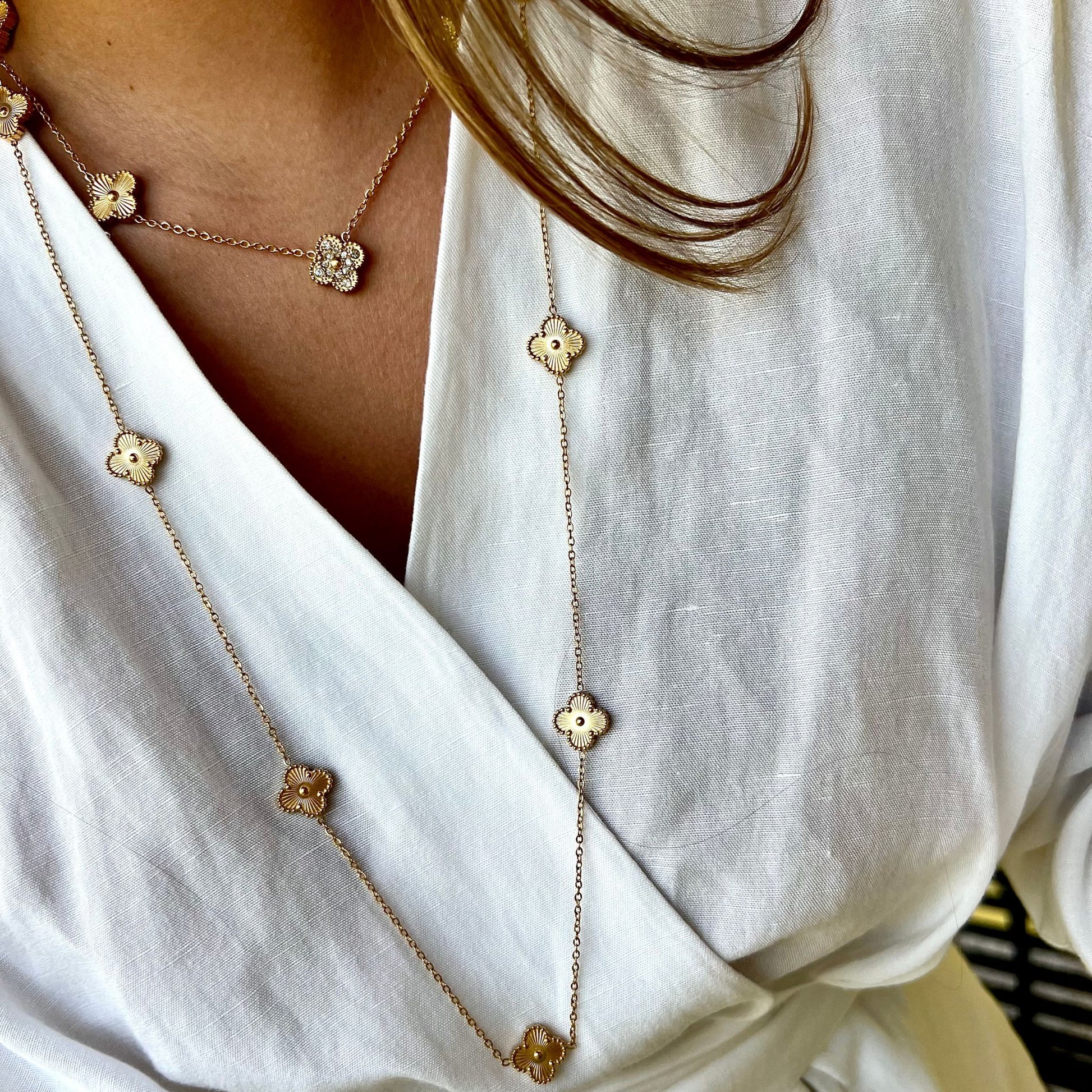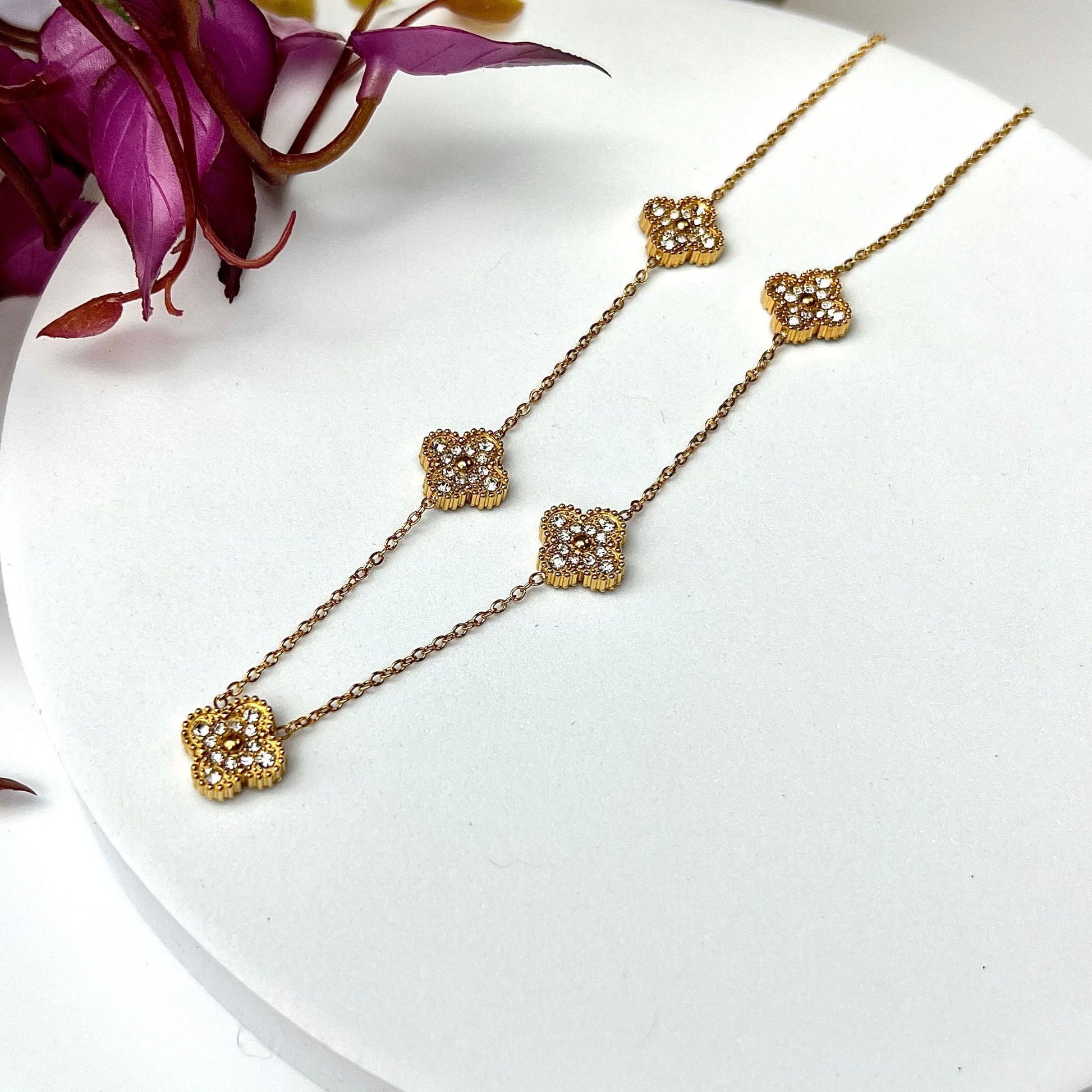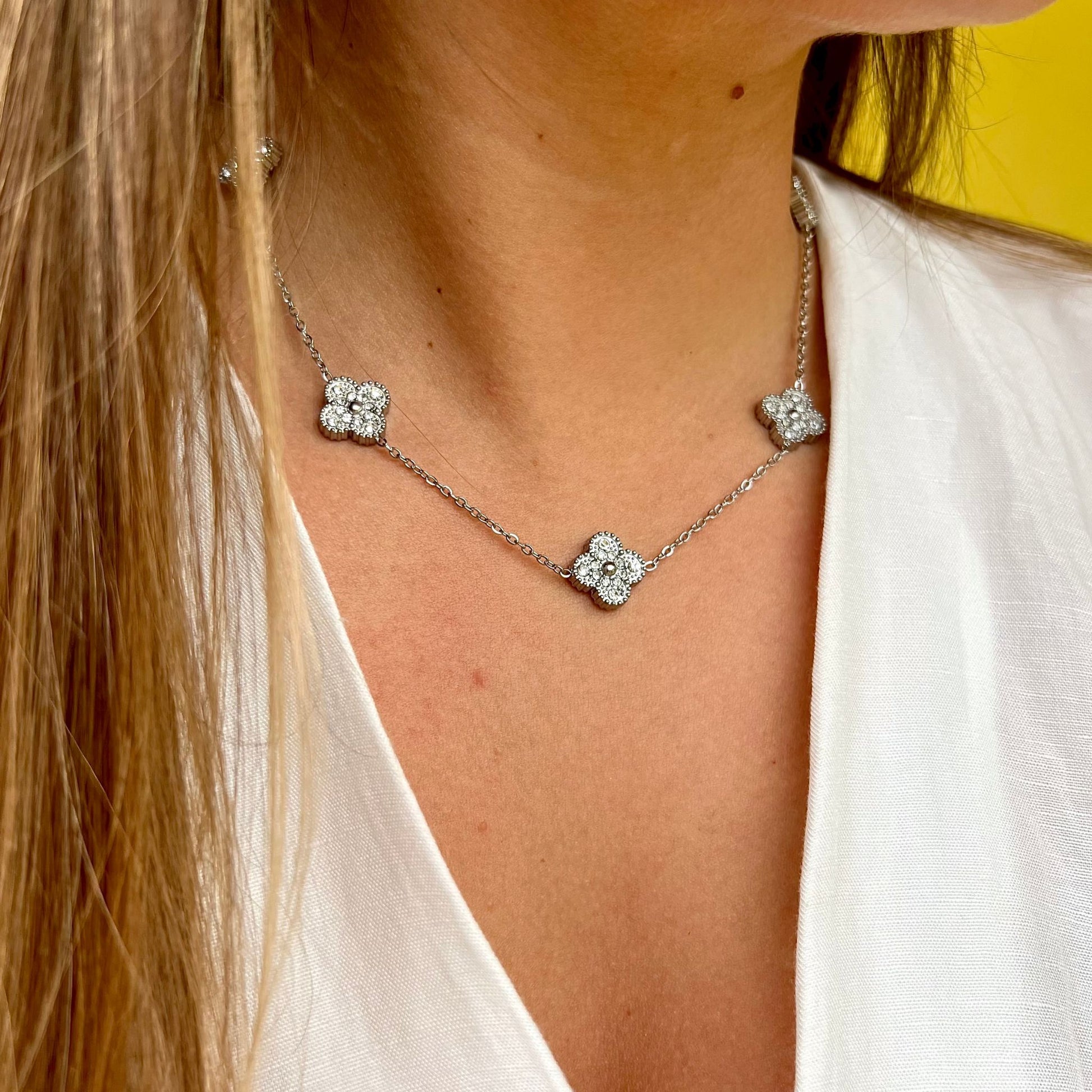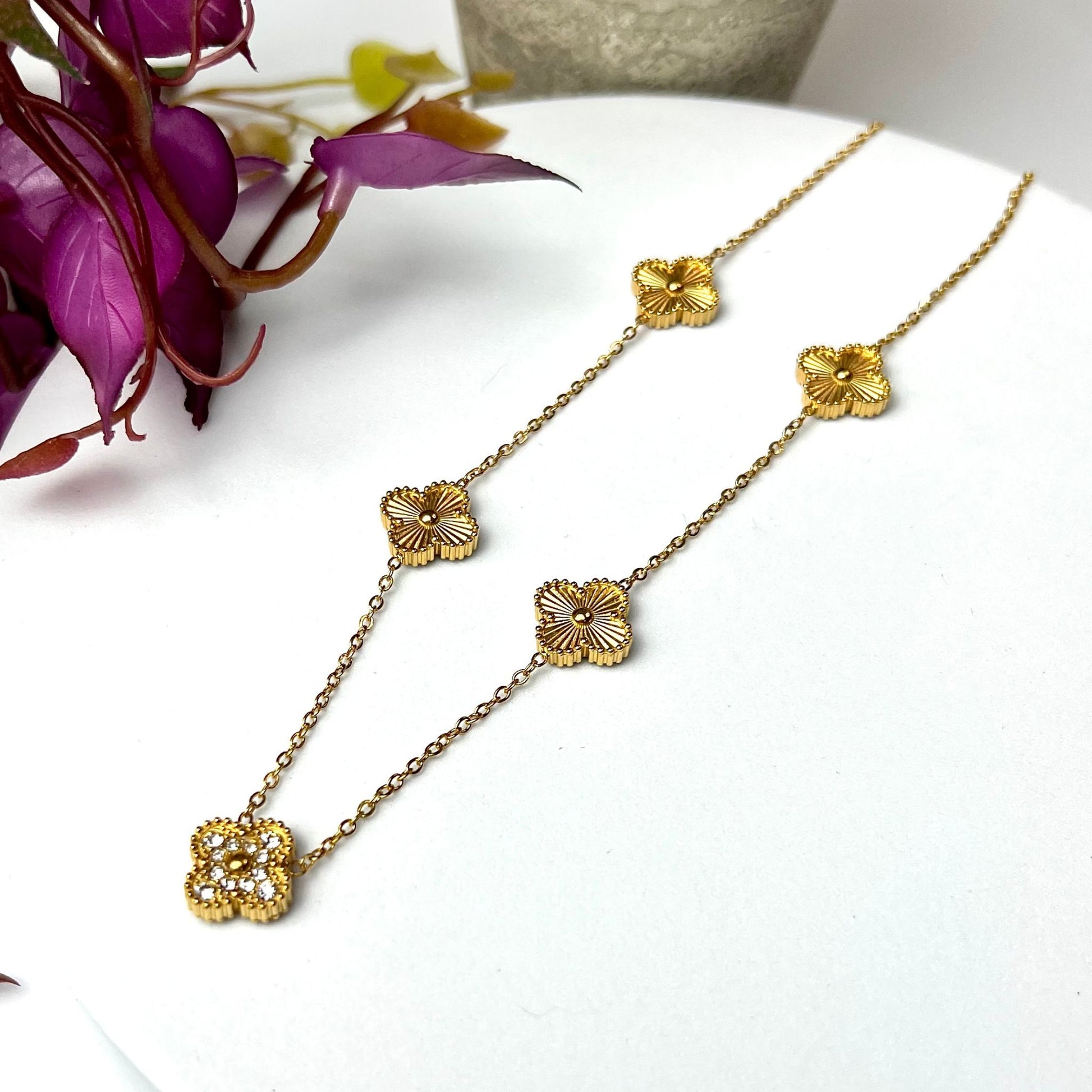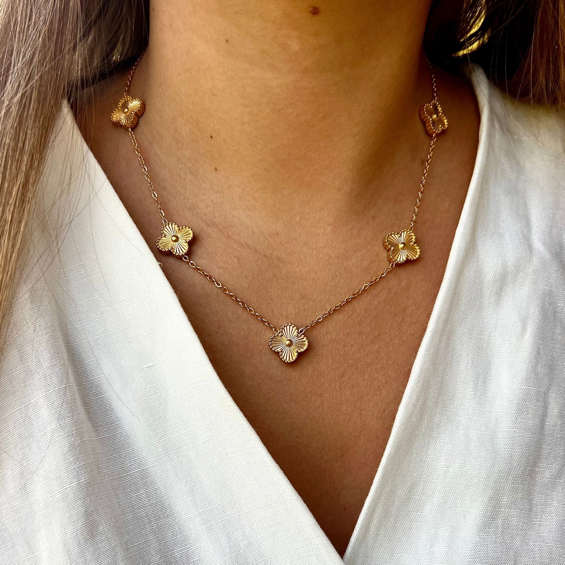 BEATRIZ III | Colar com 5 Trevos Reversível em Aço Inoxidável