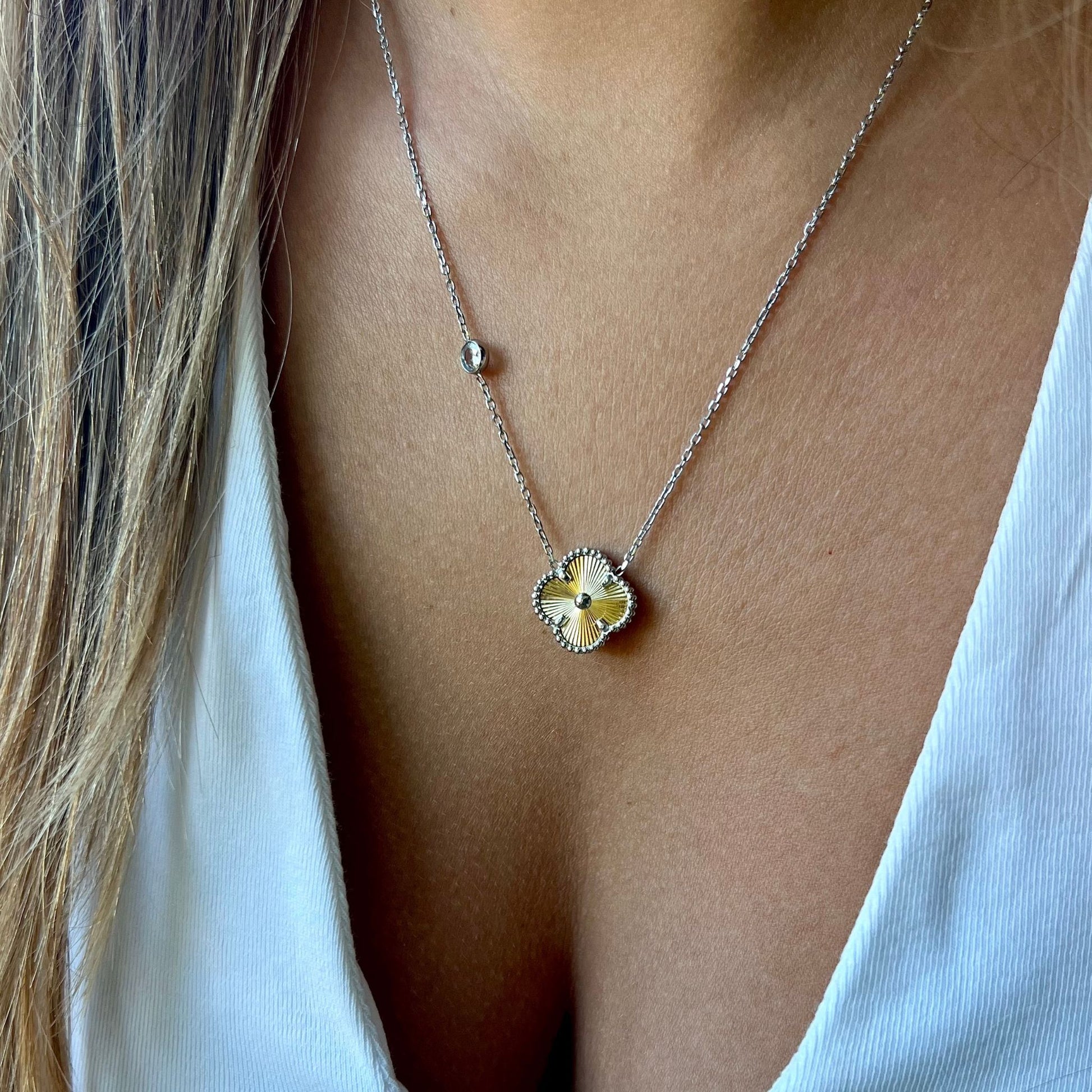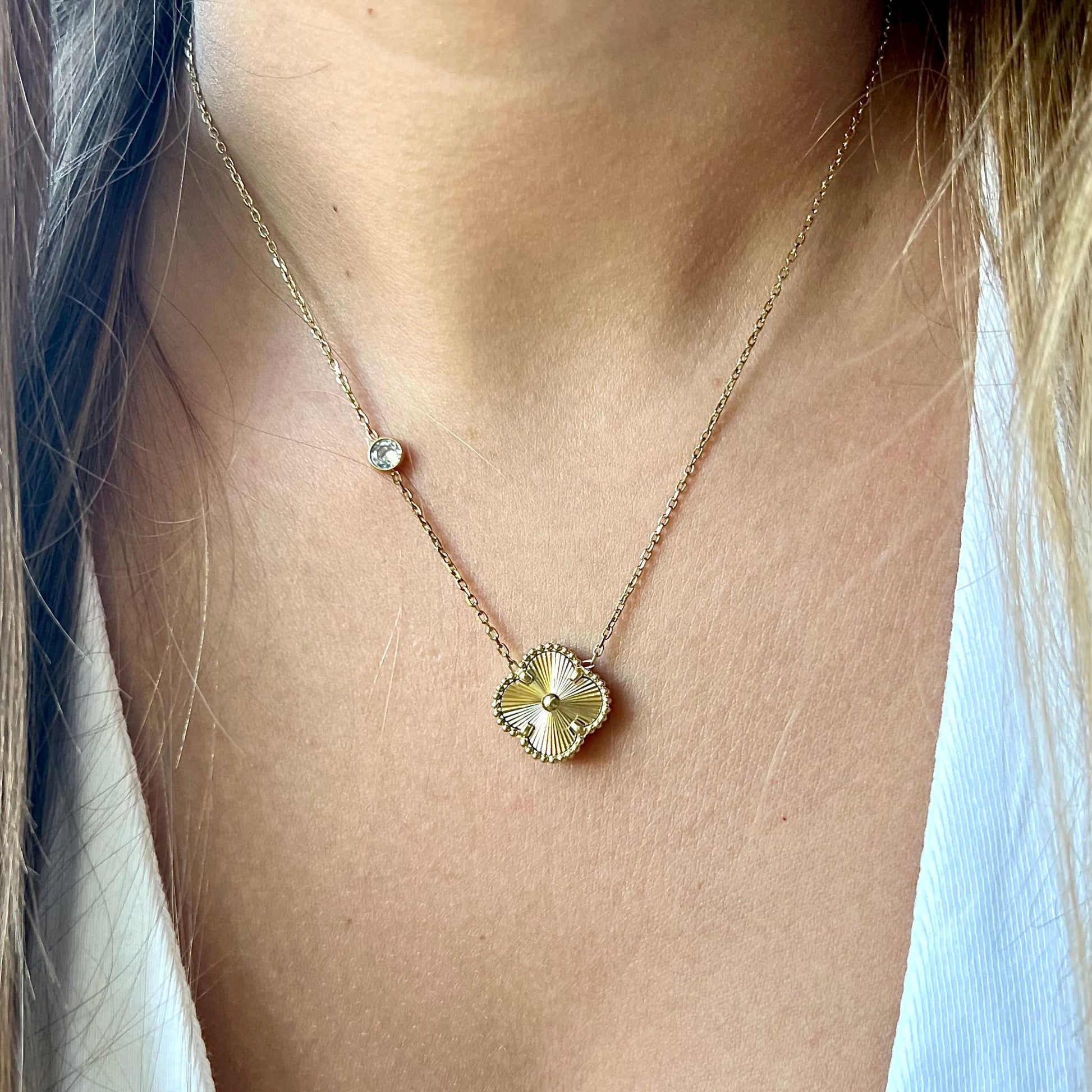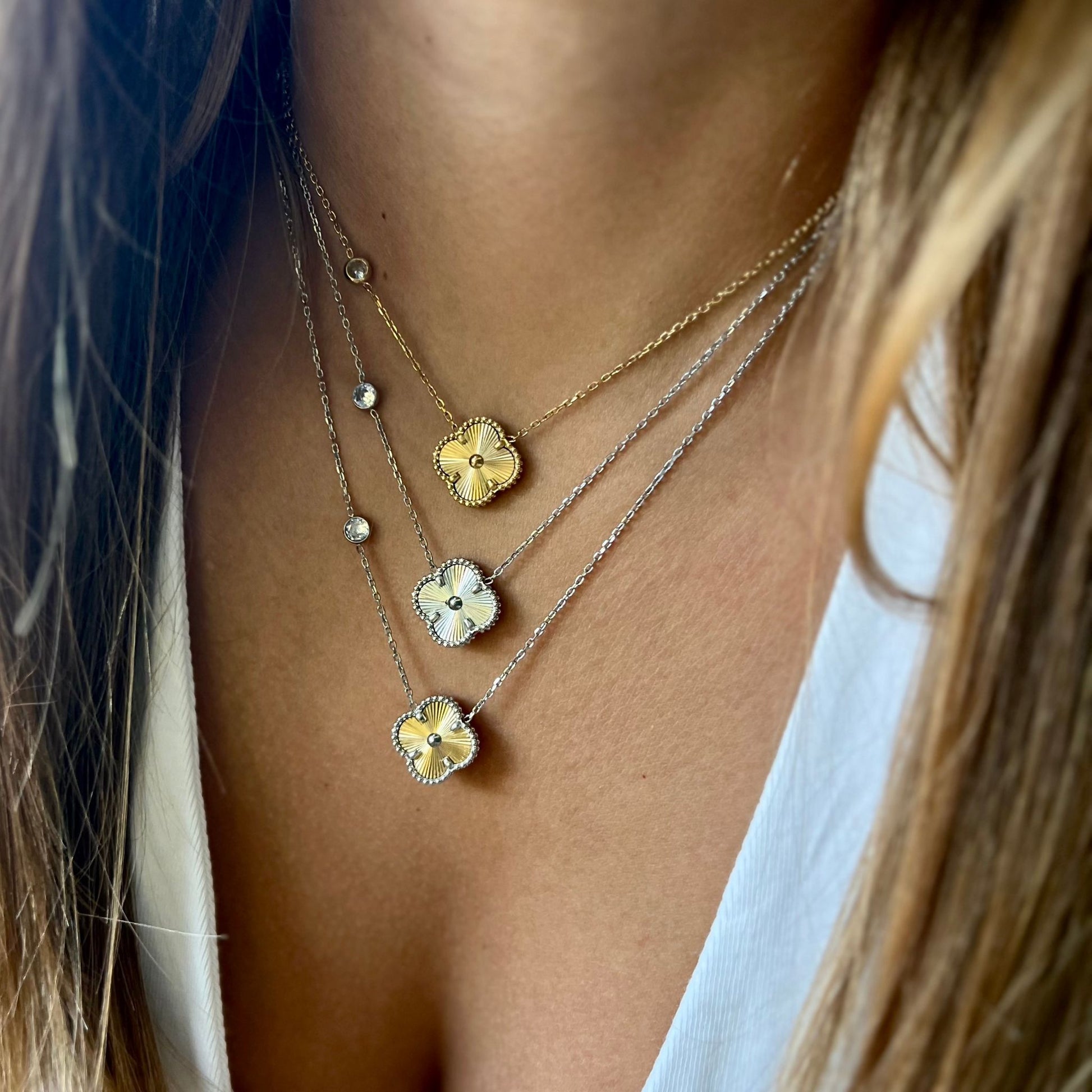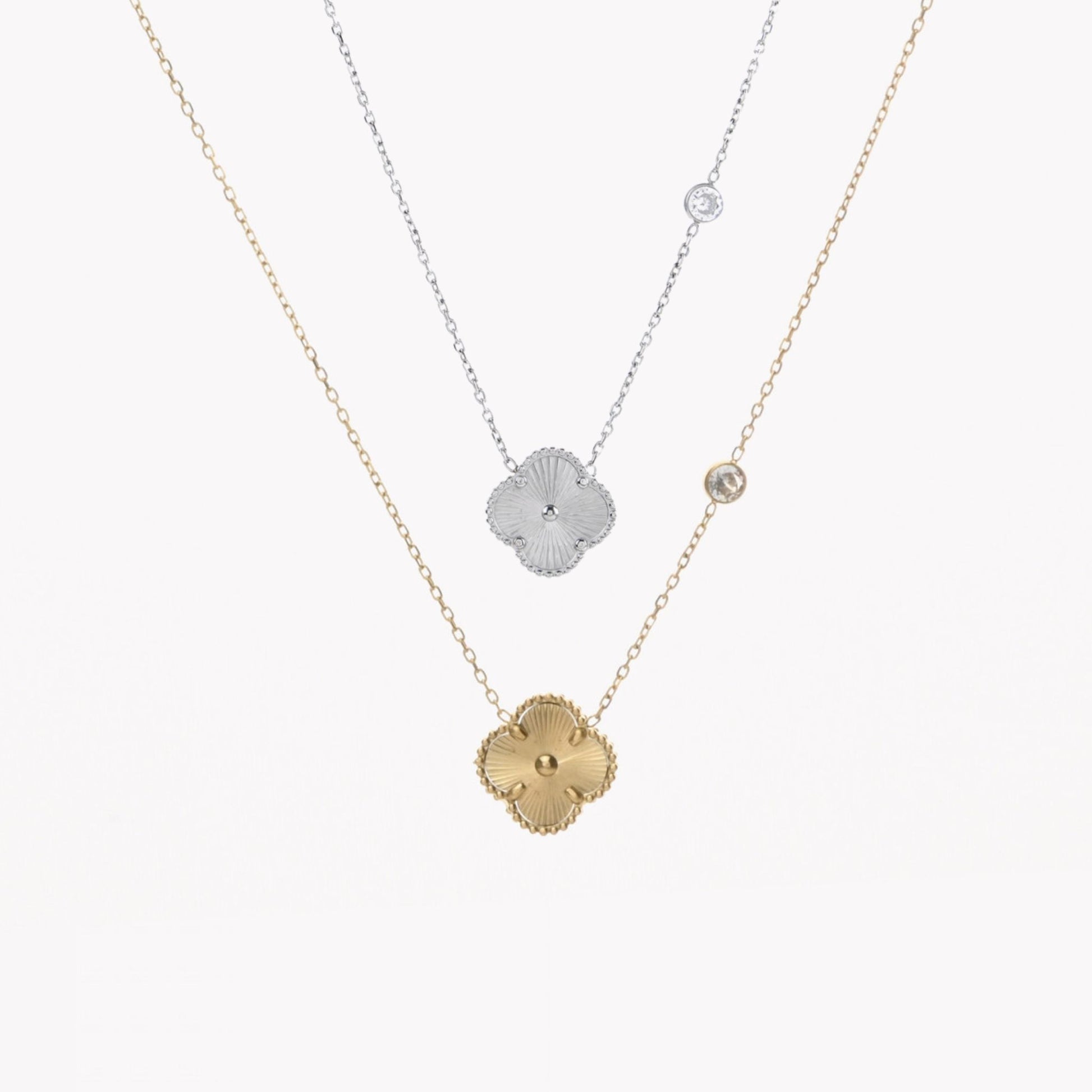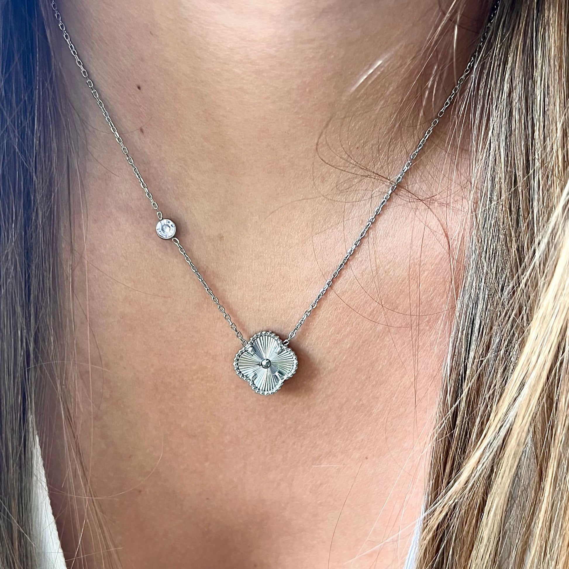 BEATRIZ VI | Colar com Trevo e Zircônia em Aço Inoxidável