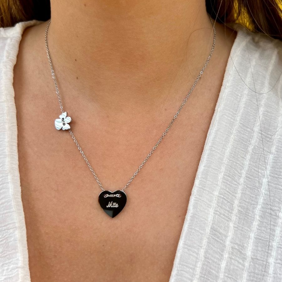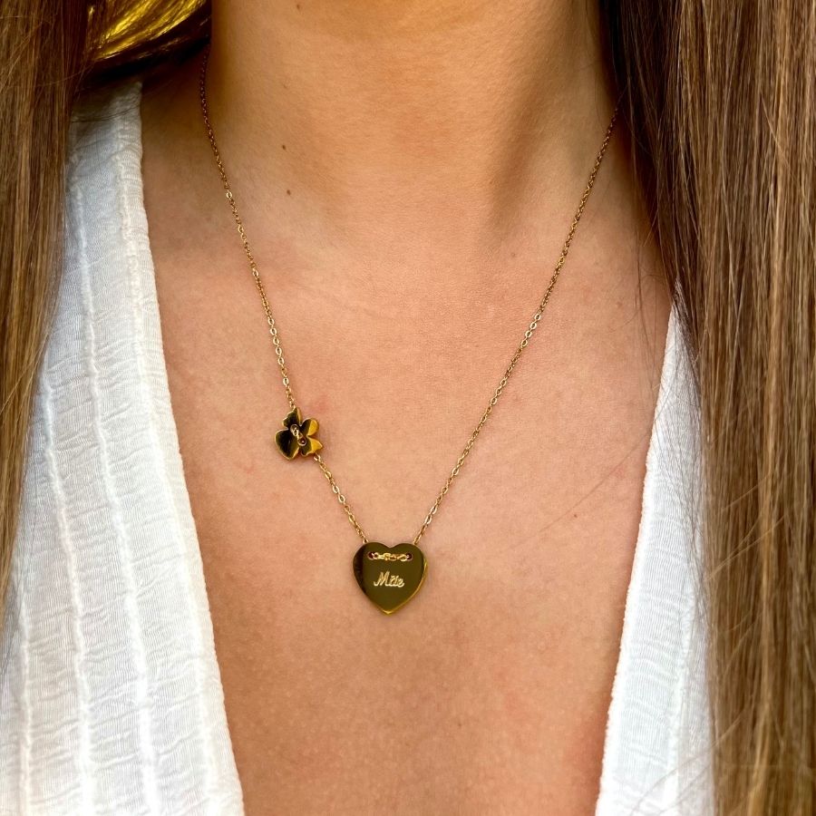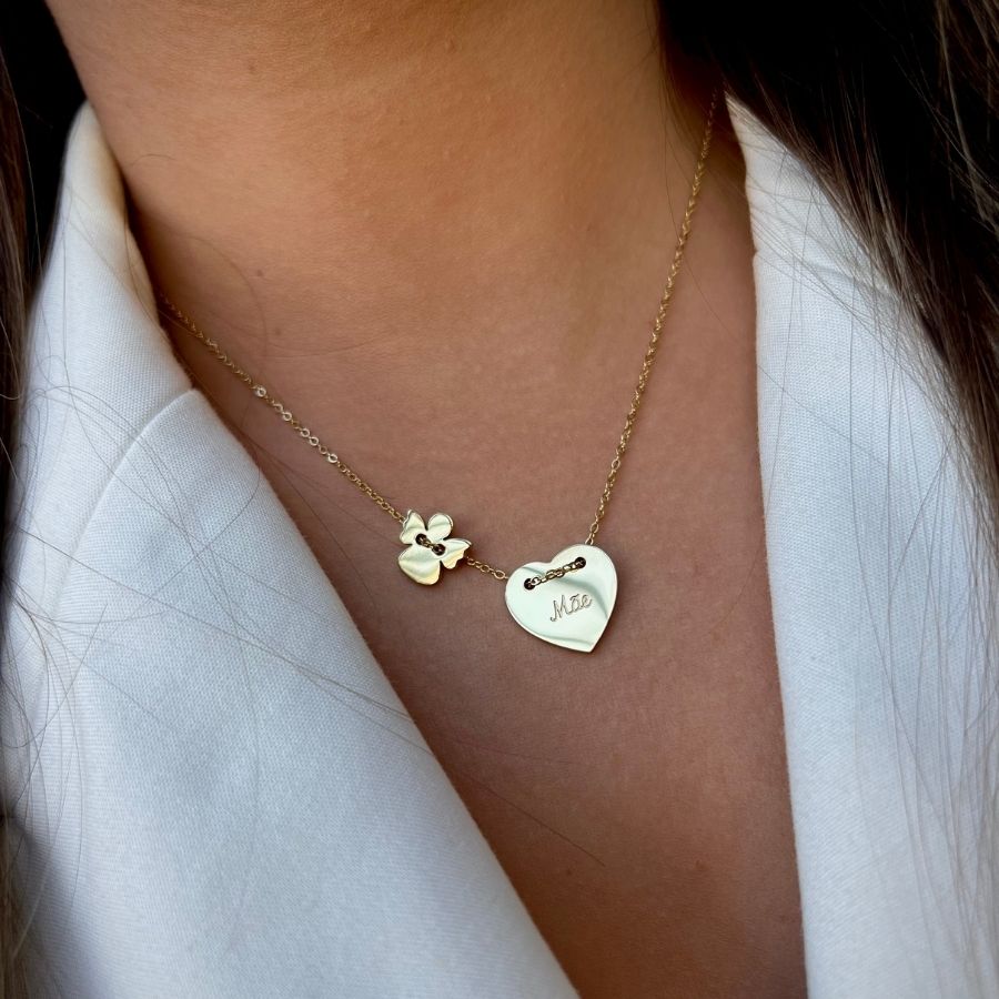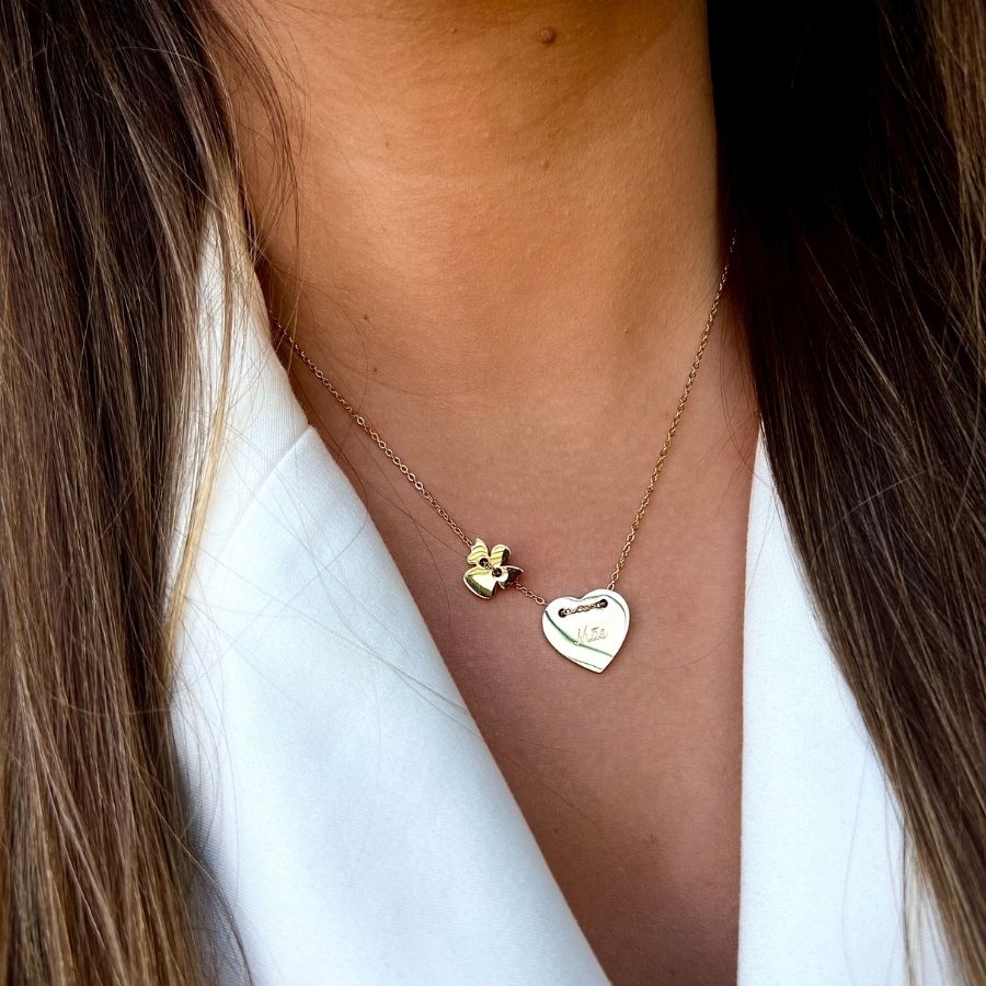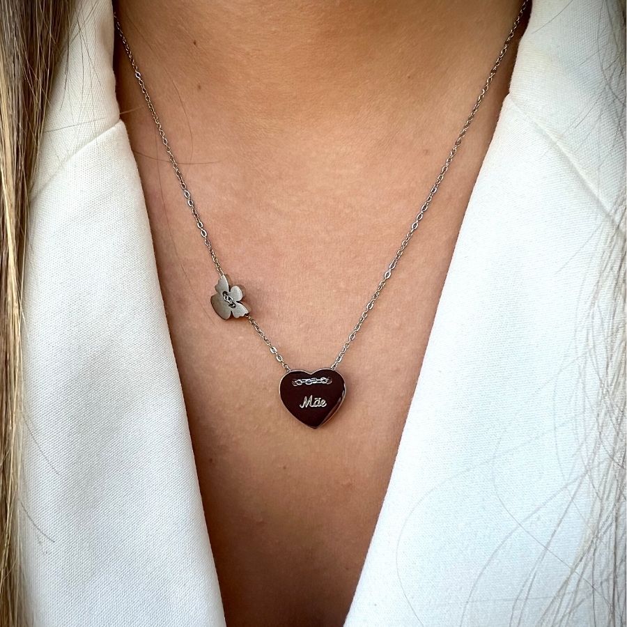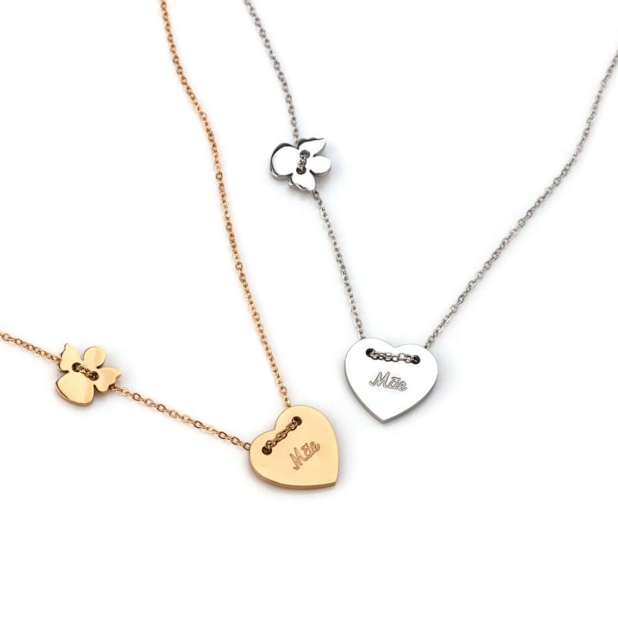 Disponível em aço inoxidável dourado e prateado, é um colar resistente e elegante, ideal para oferecer no Dia da Mãe ou noutra ocasião especial.