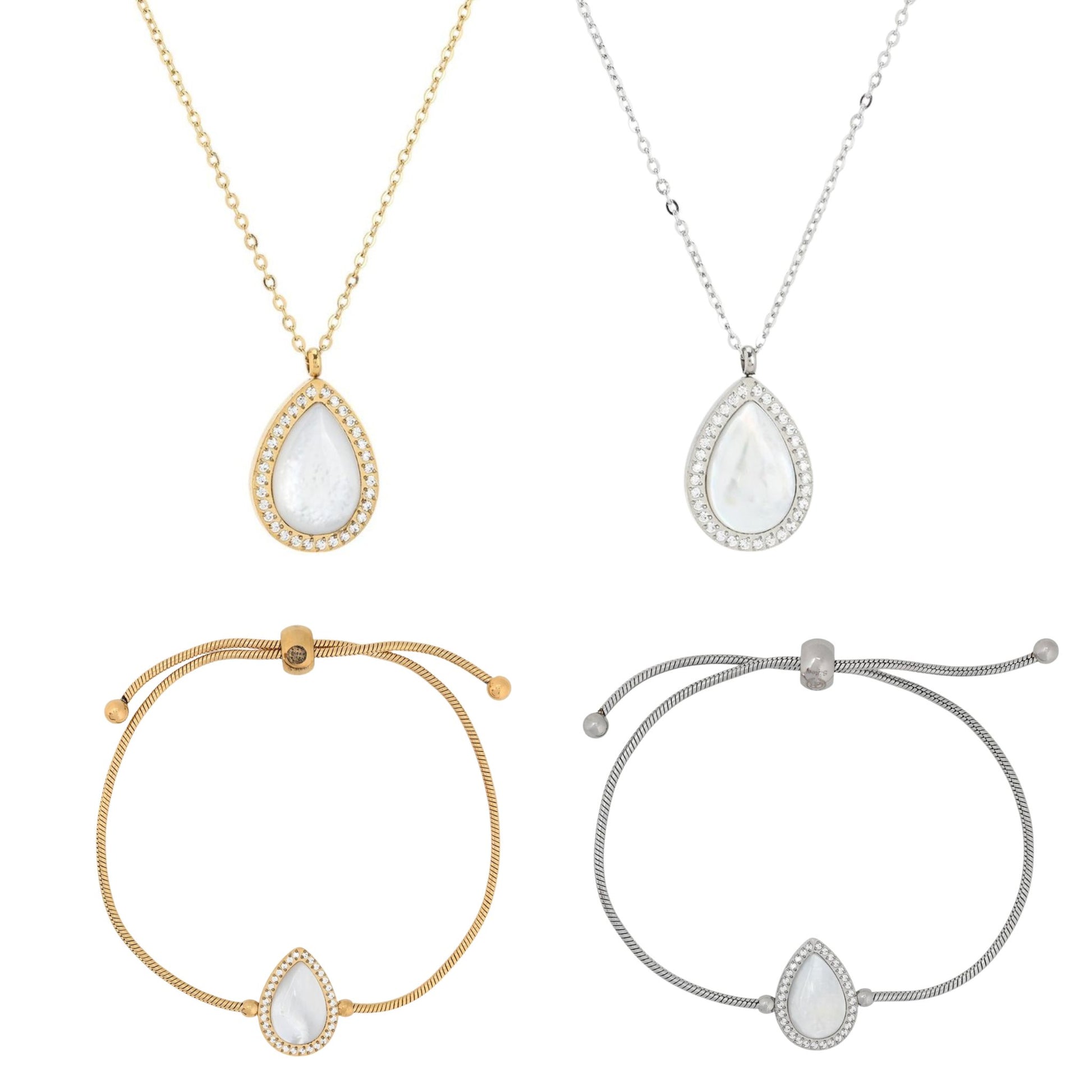 Conjunto TEAR | Colar e Pulseira em Aço Inox com Pendente em Lágrima e Zircónias