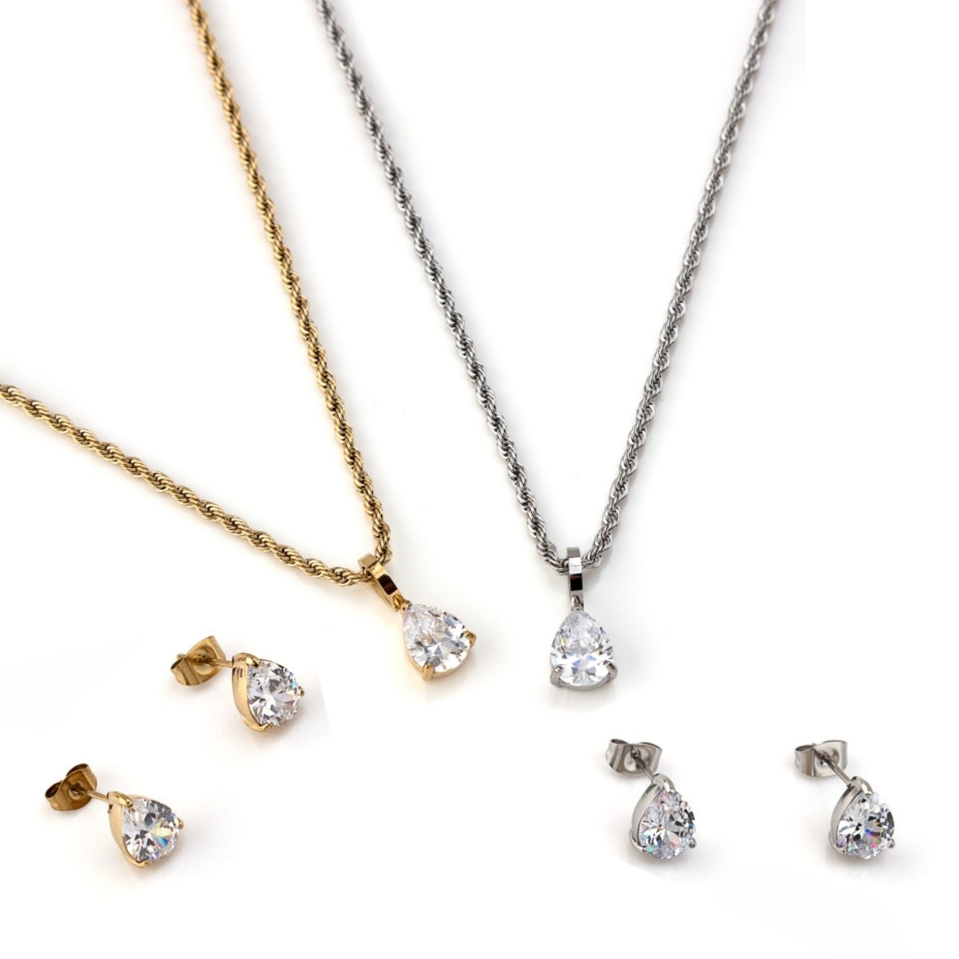 CONJUNTO YASMIN | Colar + Brincos com Brilhante (Aço Inoxidável)