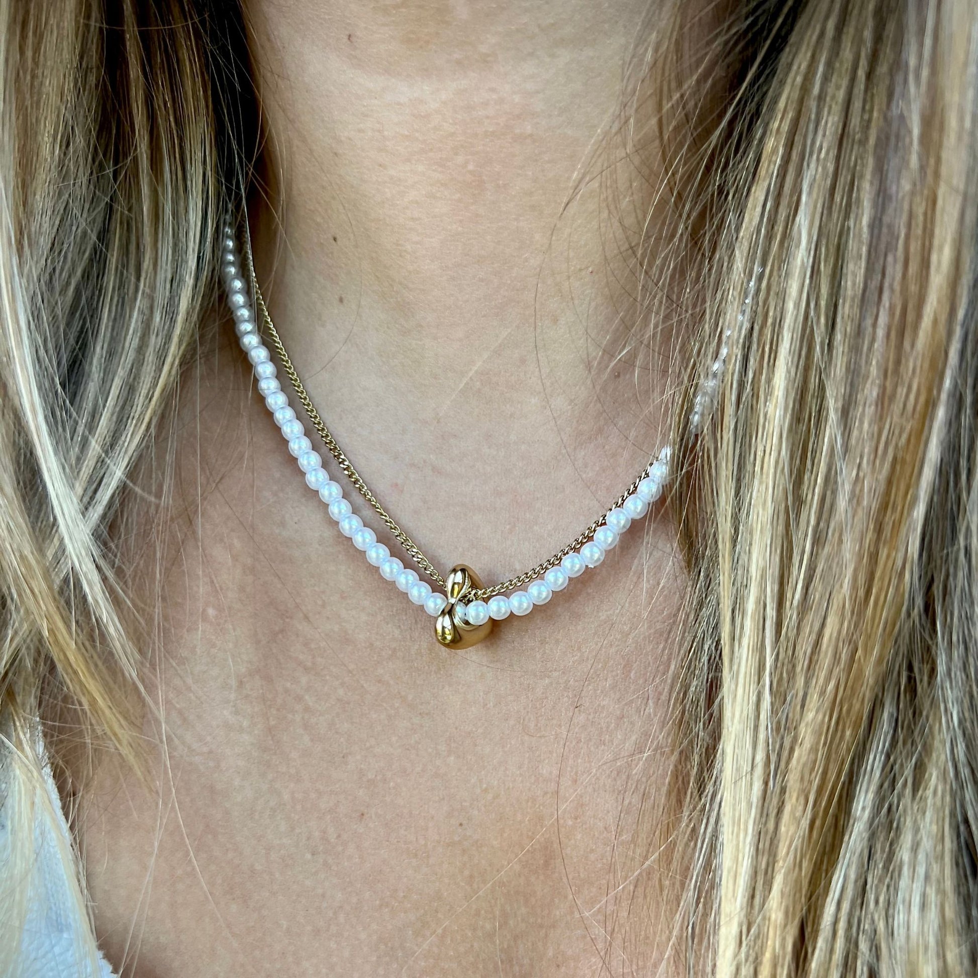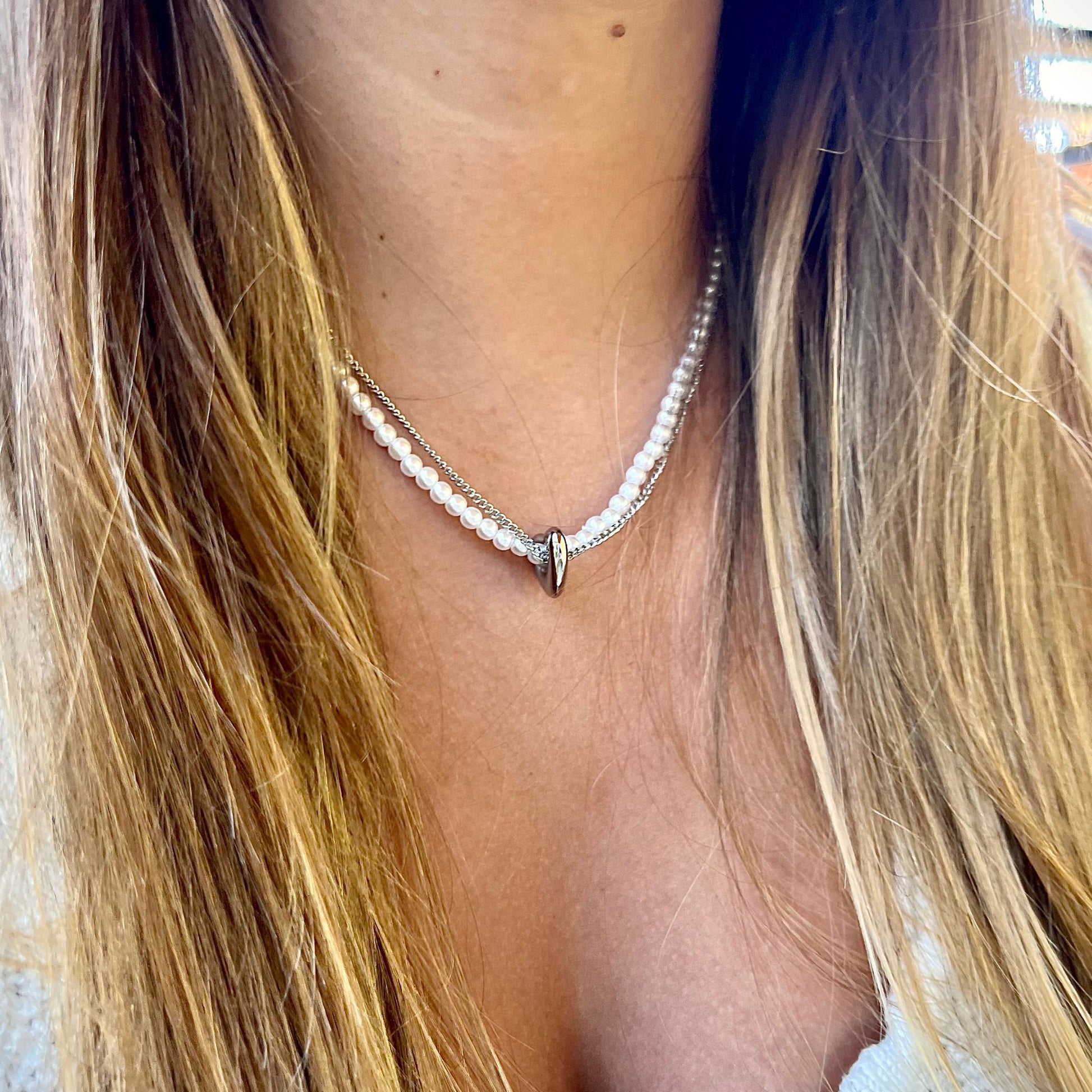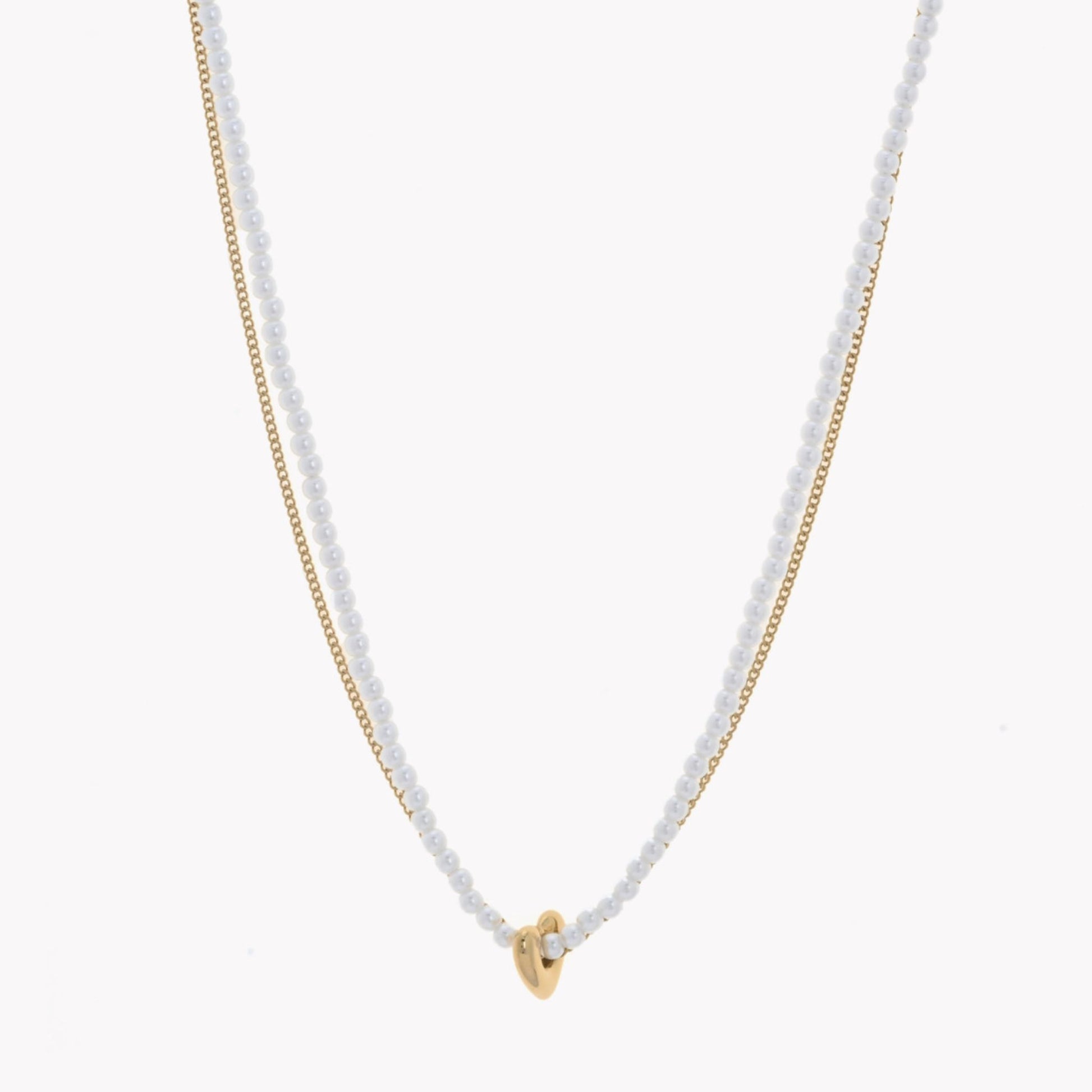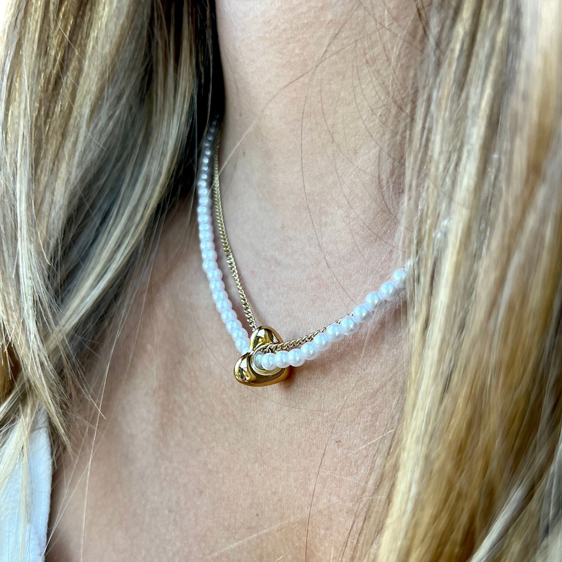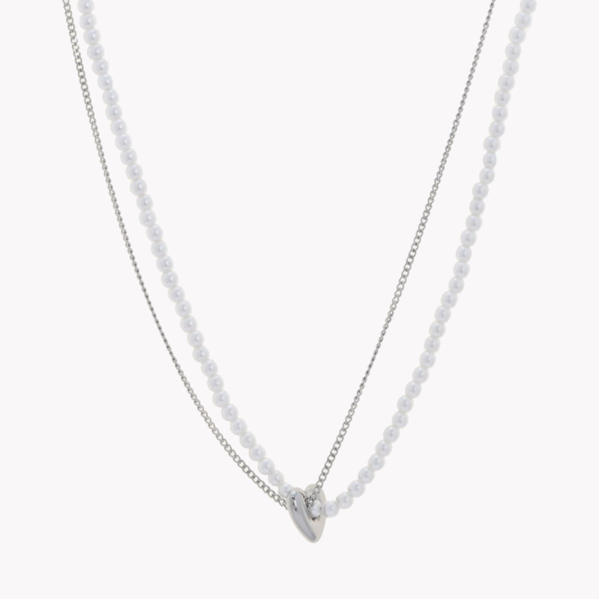 DOBLE HEART | Colar em Pérolas com Coração em Aço Inoxidável