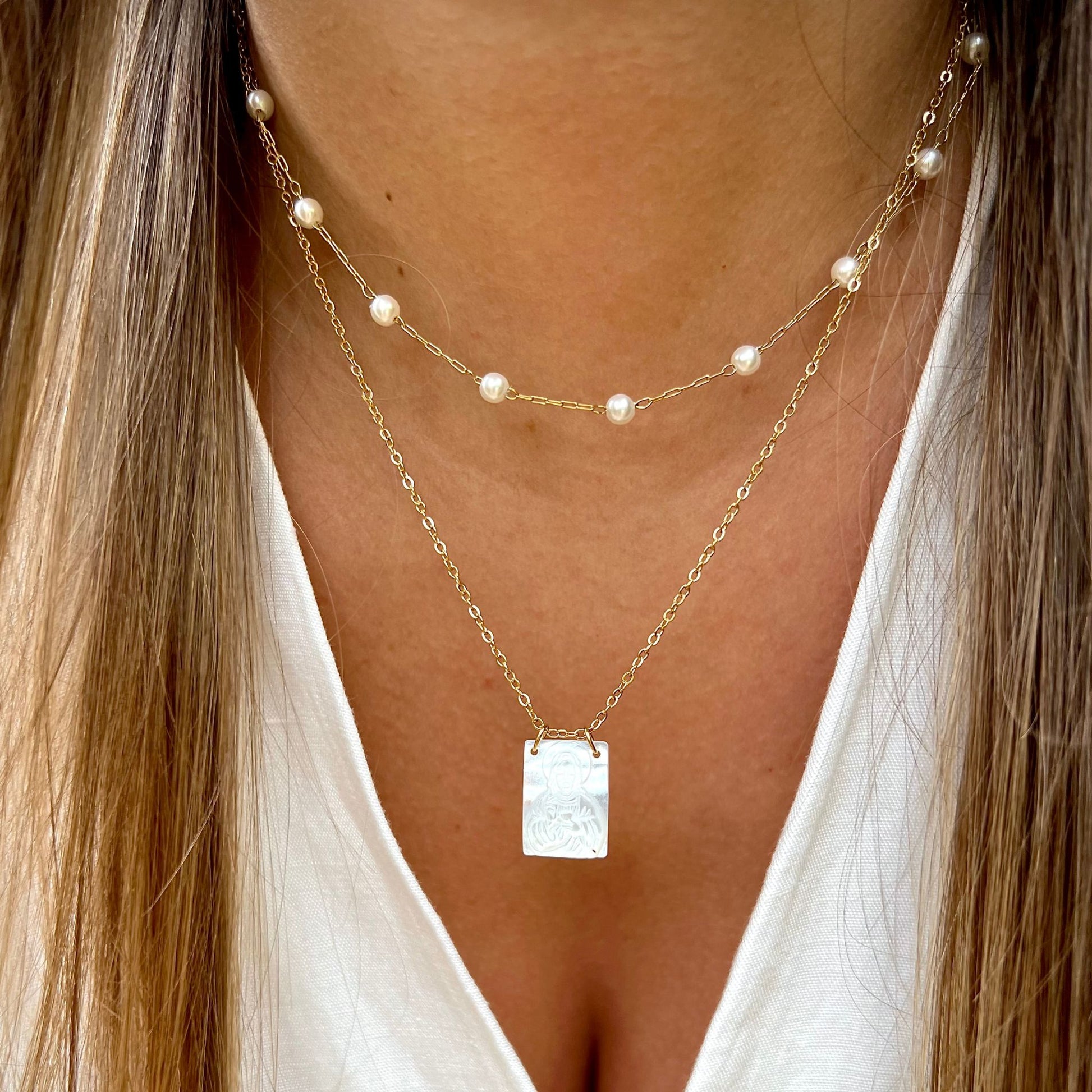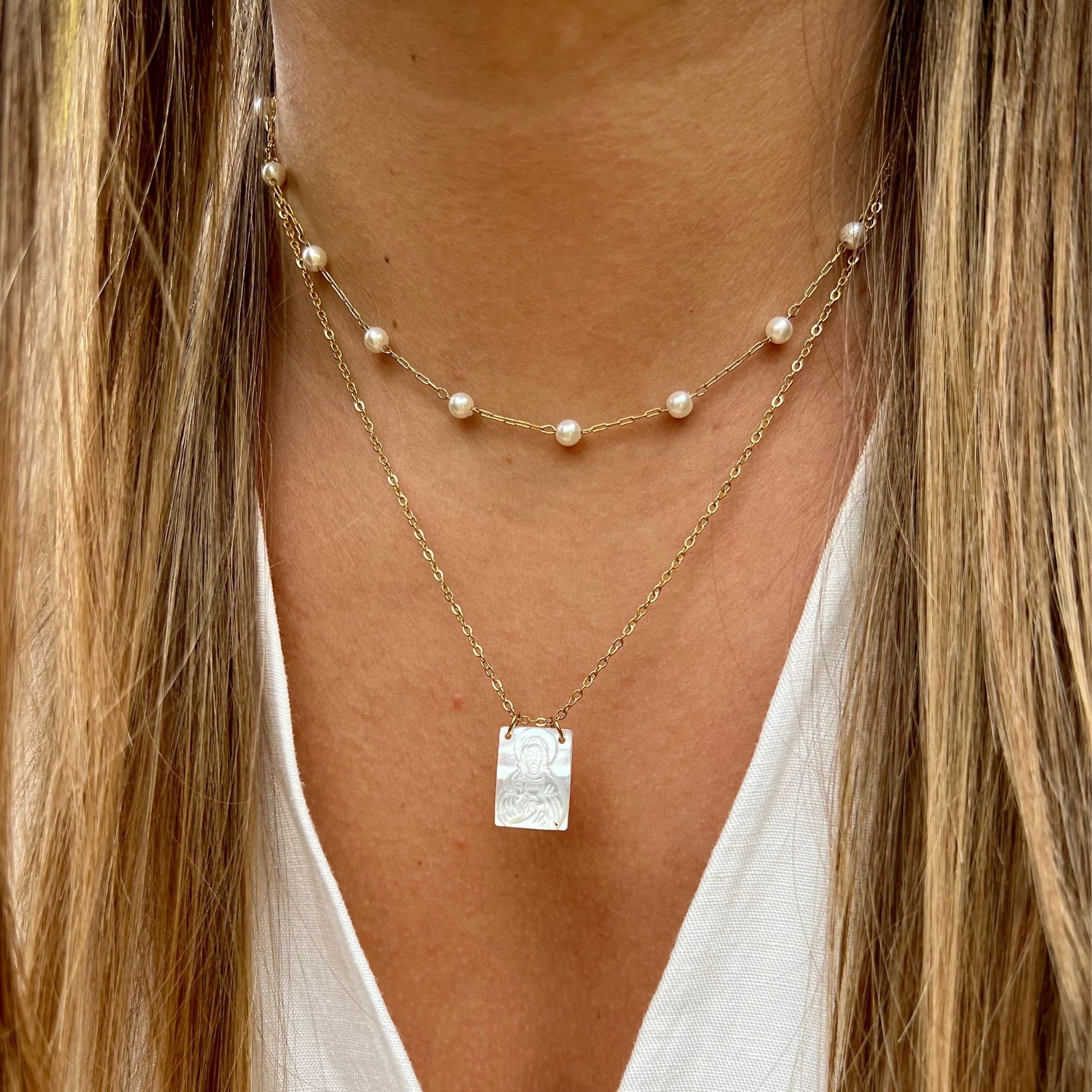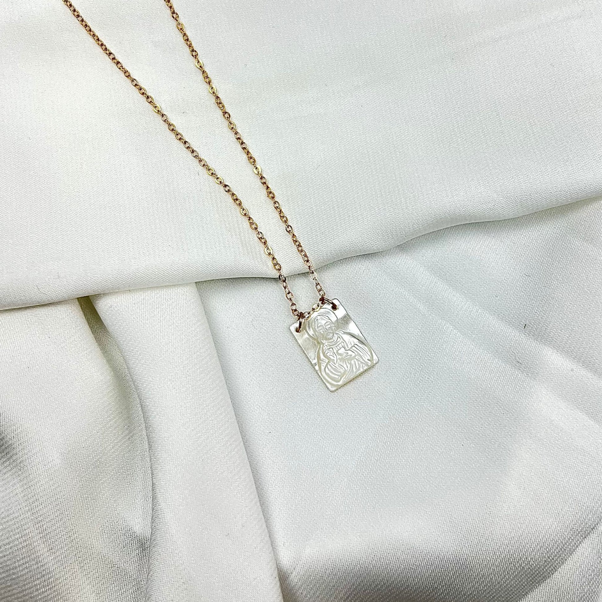 ESMERALDA II | Colar Tipo Escapulário em Aço Inox com Medalha em Madrepérola