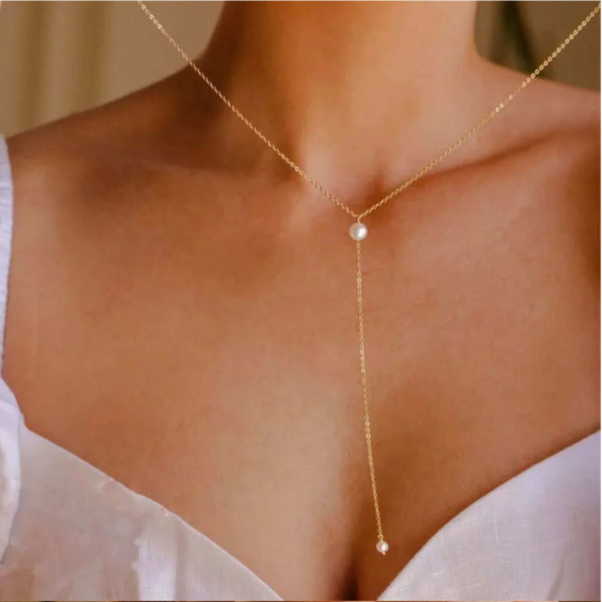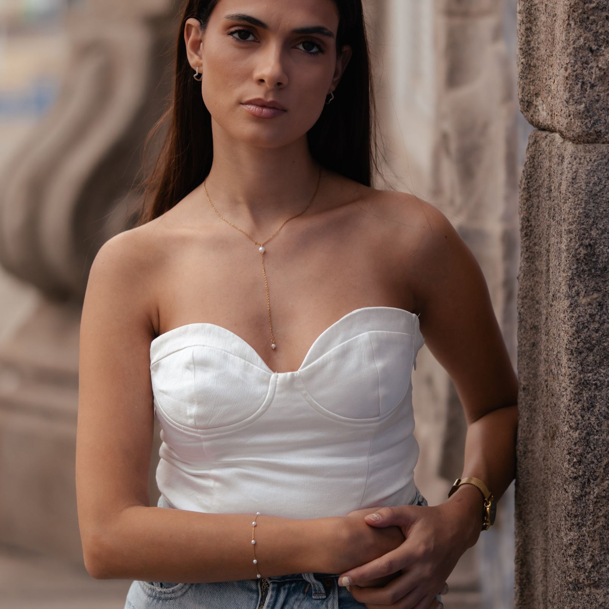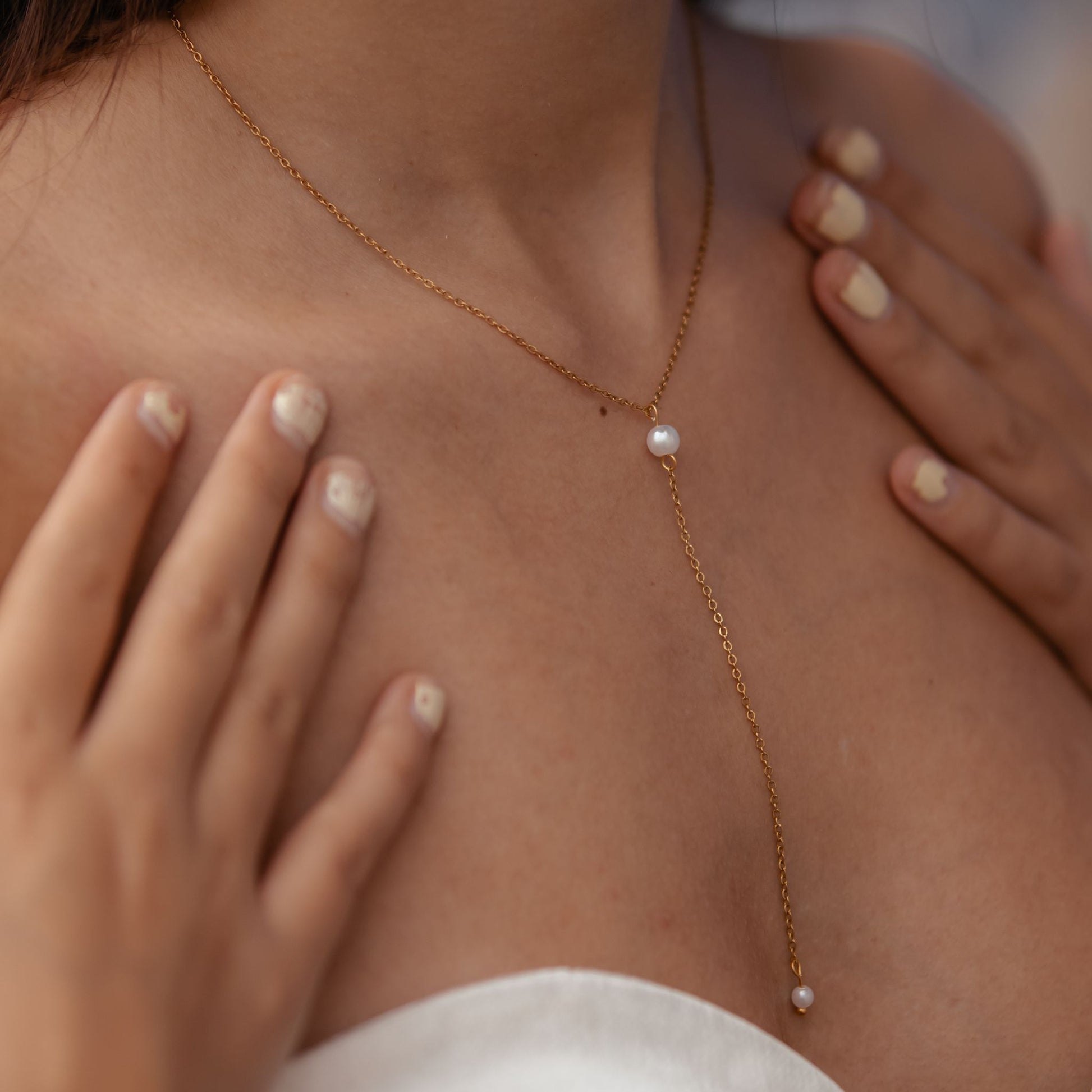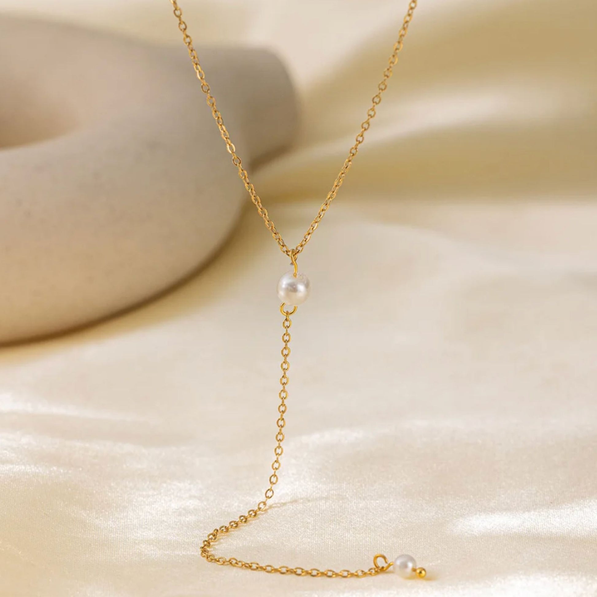 GRAVAT | Colar Estilo Gravata com Pérolas em Aço Inox