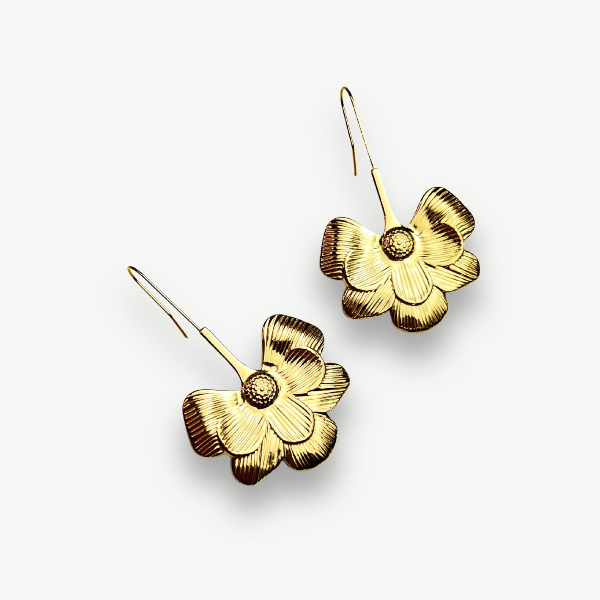 JESSICA | Brincos Compridos em Flor em Aço Inoxidável