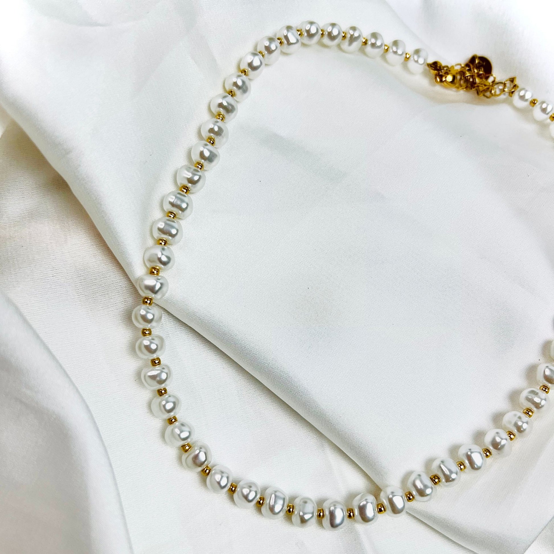 O colar Ligia II é uma gargantilha sofisticada que combina o charme intemporal das pérolas com o brilho elegante de contas douradas. Feito em aço inoxidável, garante durabilidade e resistência, mantendo o brilho intacto ao longo do tempo. Esta peça é perfeita para adicionar um toque de classe e feminilidade aos teus looks, seja para ocasiões especiais ou para elevar o teu dia-a-dia. Um clássico reinventado que não pode faltar na tua coleção!
