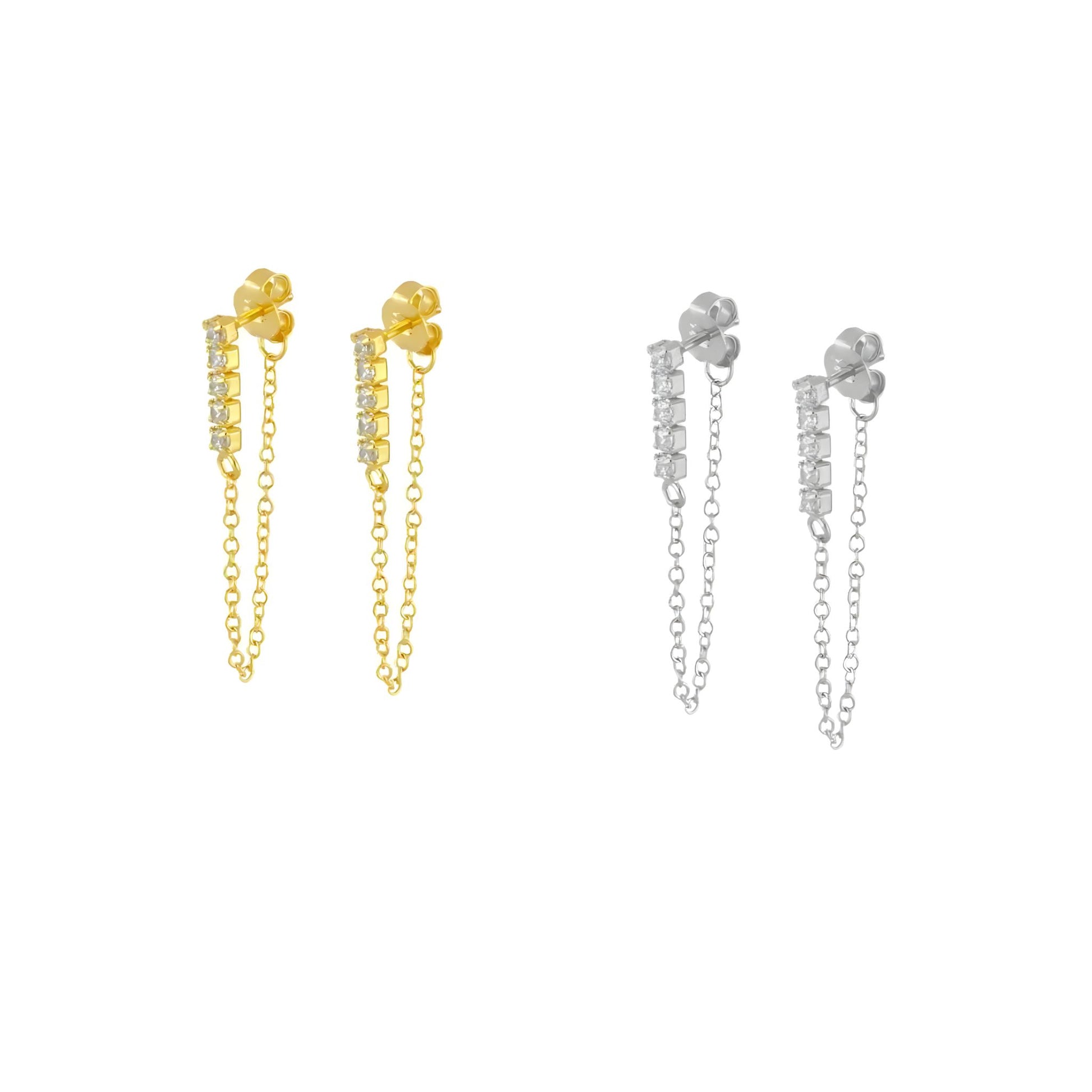 Os brincos LILA II combinam simplicidade e elegância, com pequenos brilhantes delicados e um toque de corrente fina que adiciona movimento e estilo. Produzidos em aço inoxidável de alta qualidade, são resistentes e ideais para uso diário ou para complementar outros acessórios. Uma peça básica premium que se adapta a qualquer look, perfeita para quem aprecia joias versáteis e duradouras.