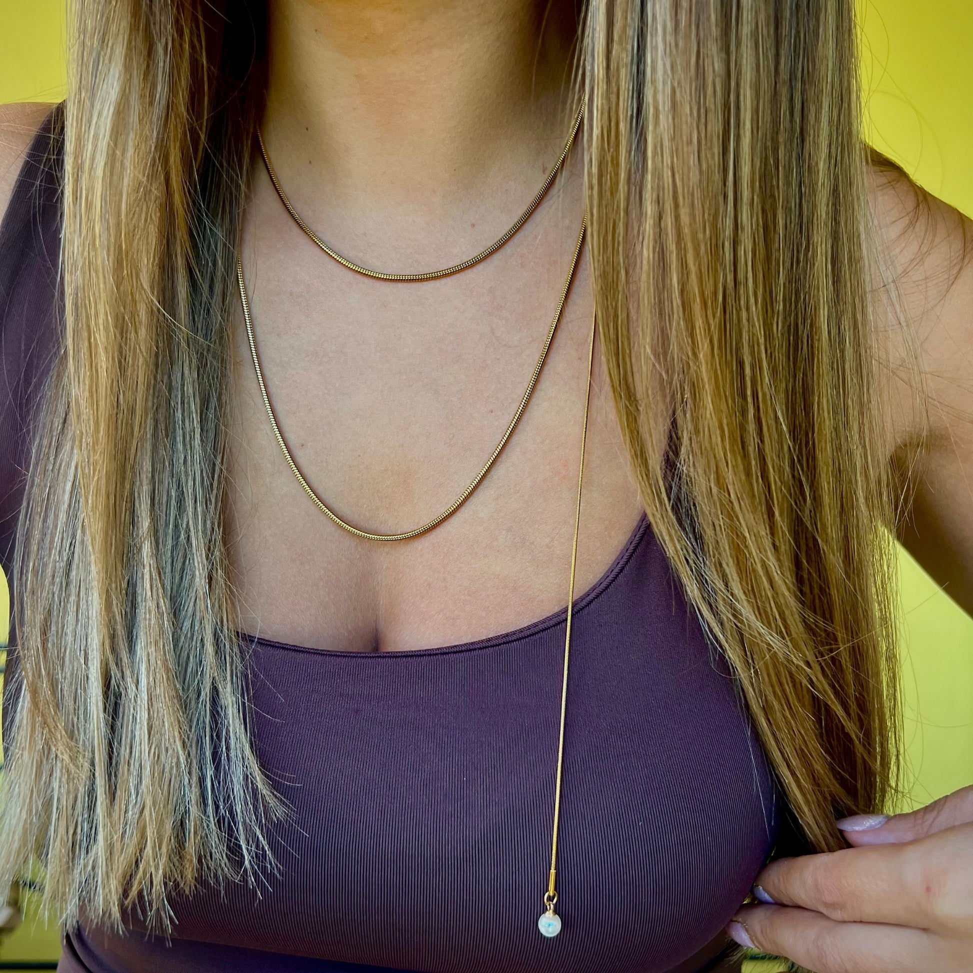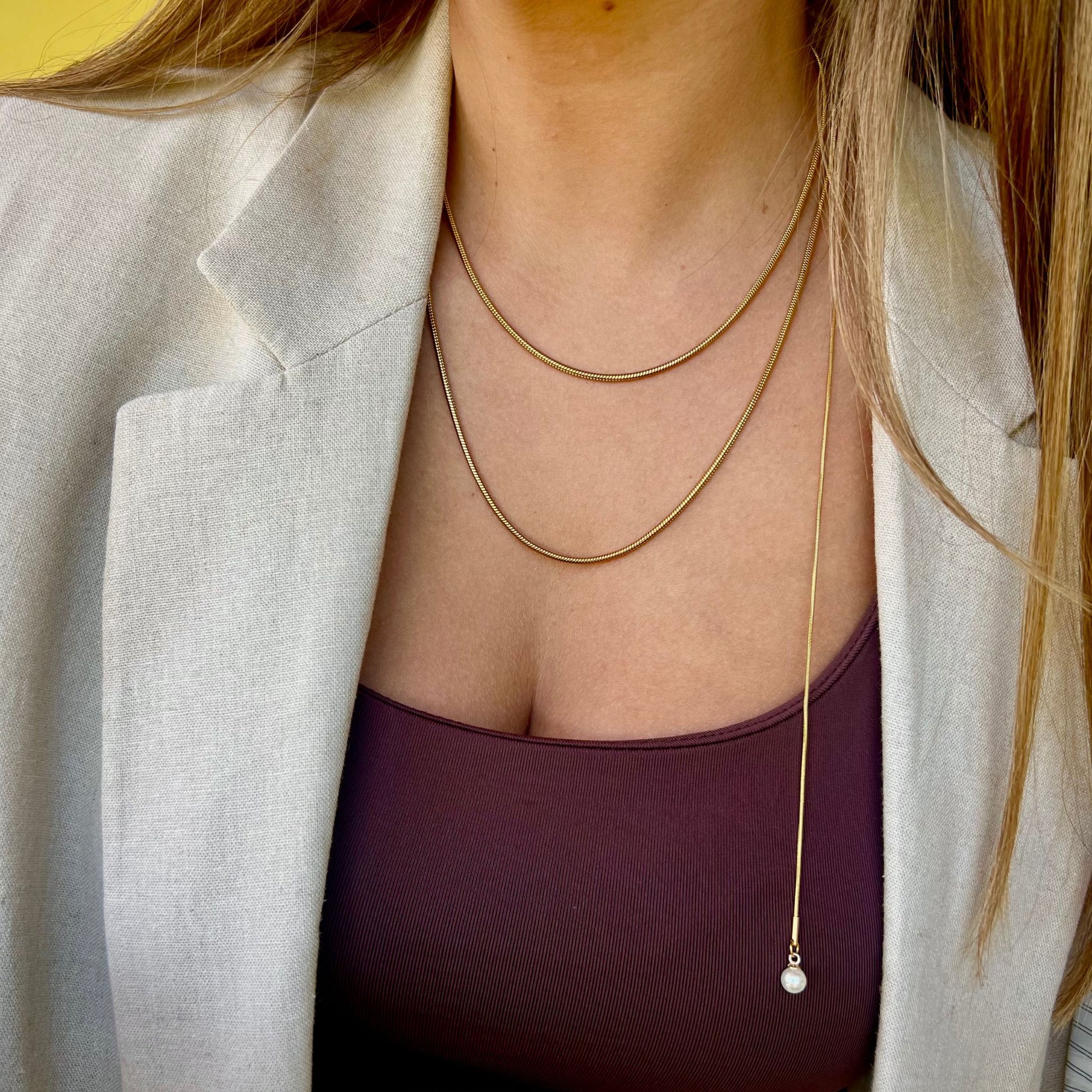 MEL | Colar Longo Multifuncional com Pérola em Aço Inoxidável Dourado