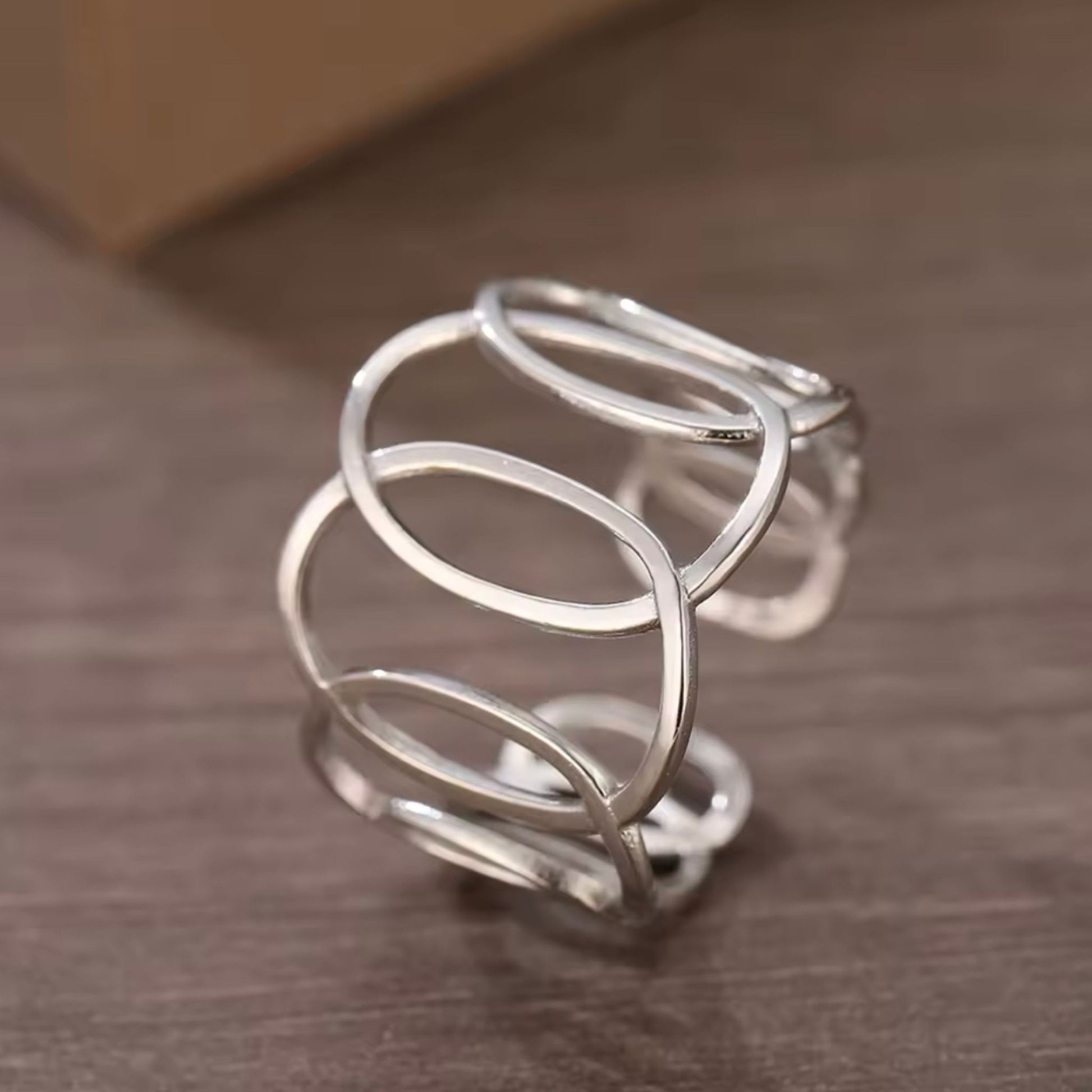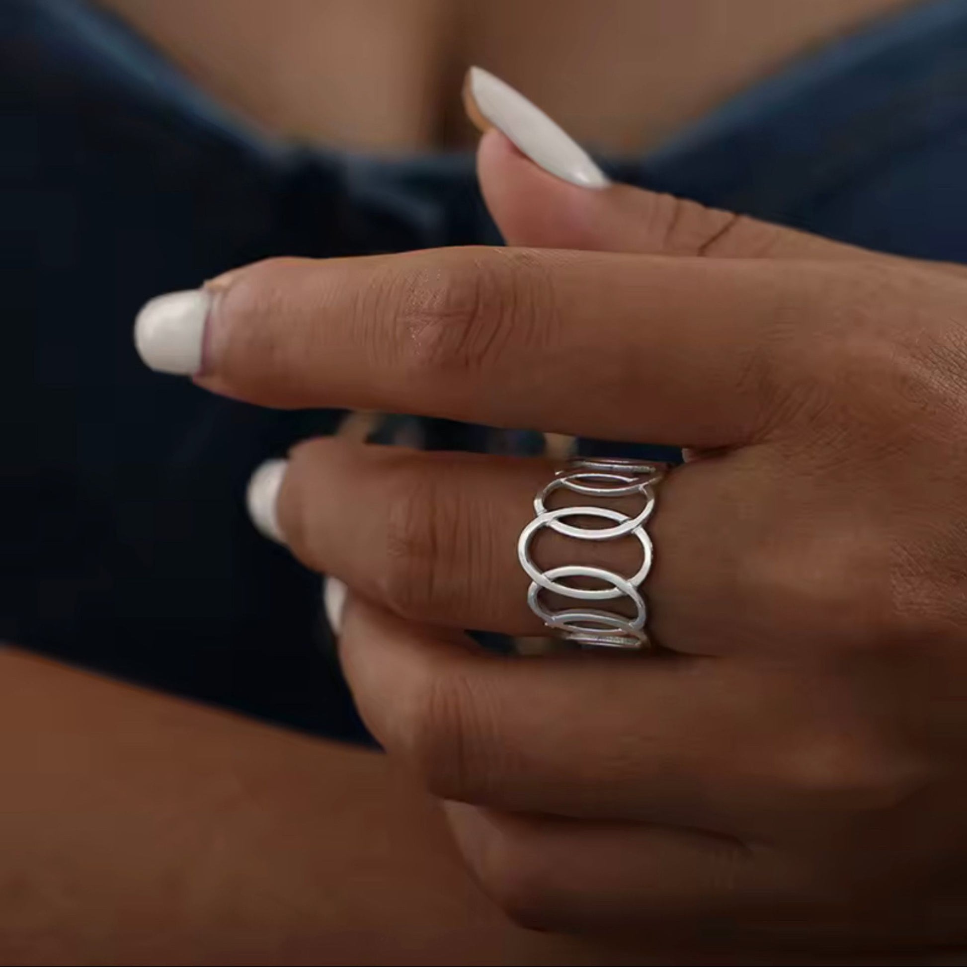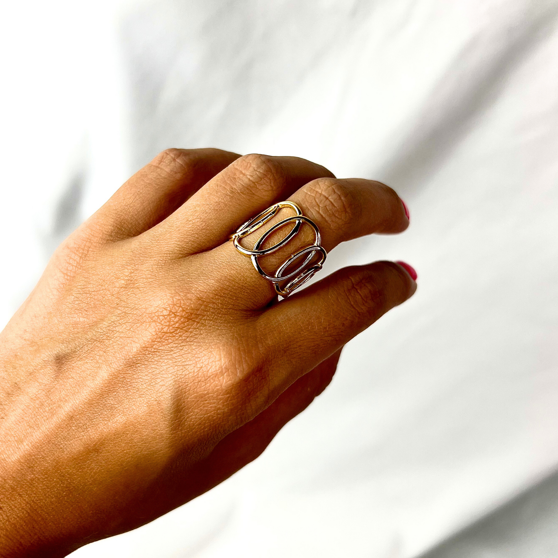 MELANIE | Anel Ajustável com Elos Ovais em Aço Inoxidável