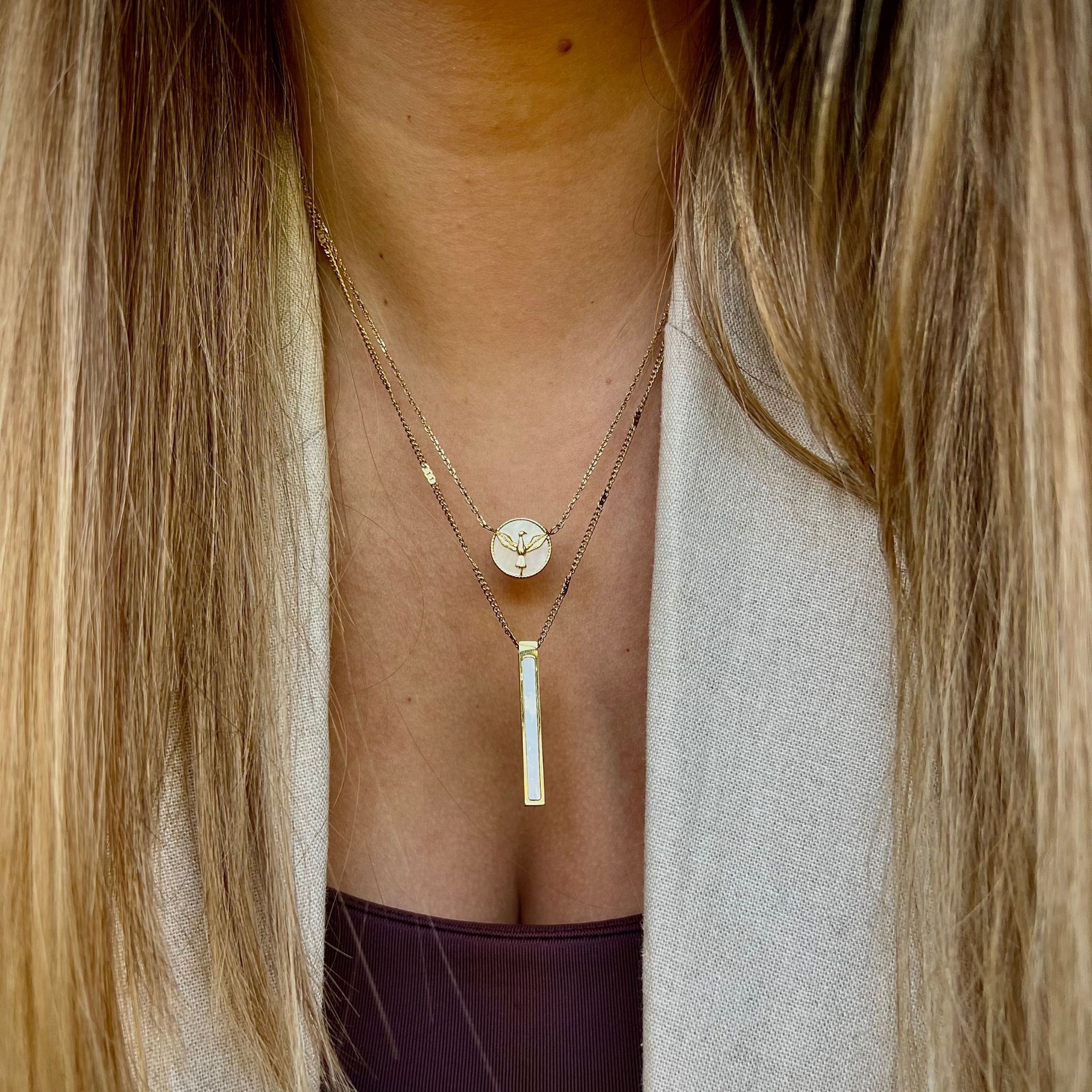 O colar MILAN apresenta uma medalha vertical em madrepérola dourada, combinando elegância e sofisticação num design atemporal. Produzido em aço inoxidável de alta qualidade, oferece durabilidade e brilho duradouro, sendo perfeito para uso diário ou ocasiões especiais.