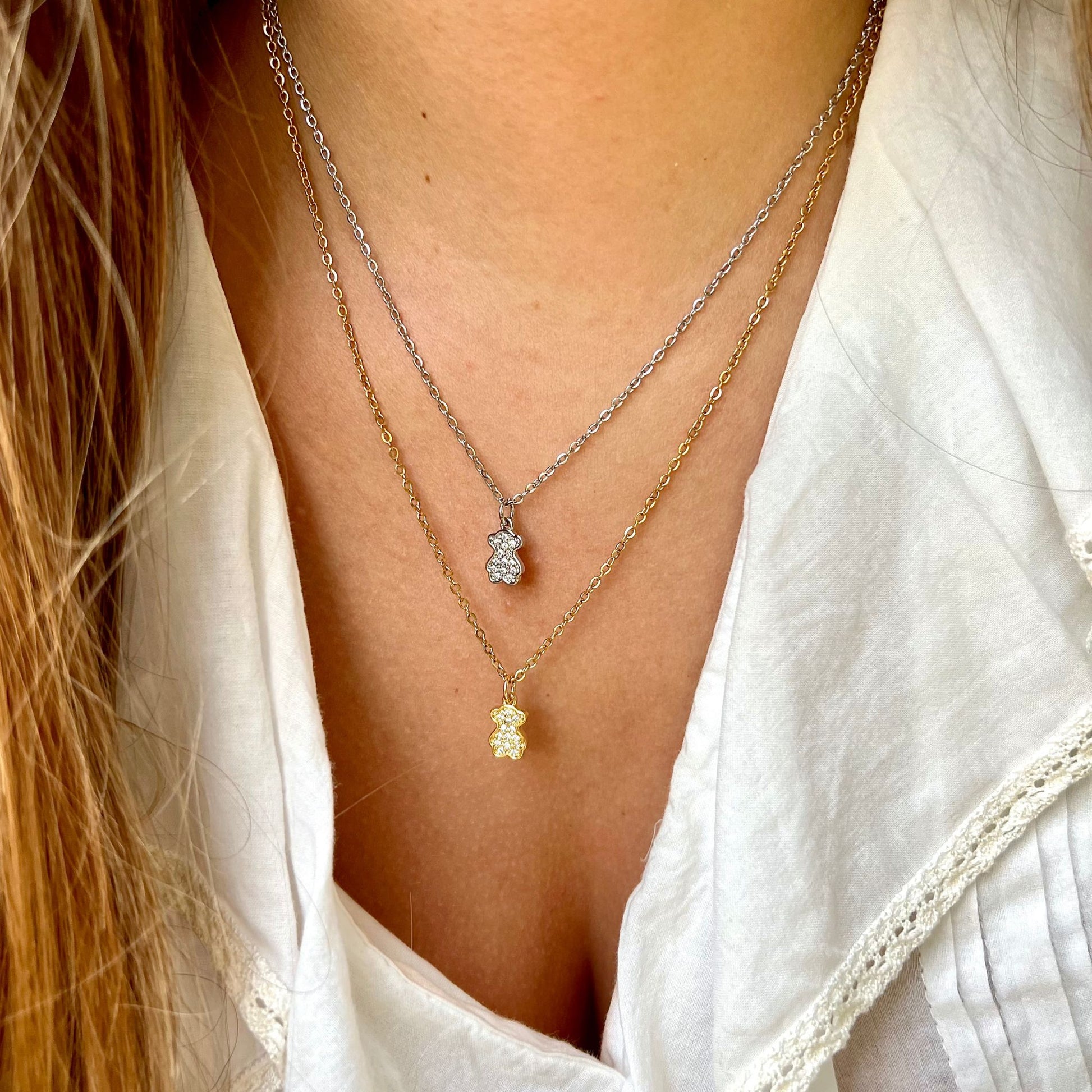 Encantador e delicado, o colar MINI TEDDY apresenta um pequeno pendente de ursinho cravejado com zircônias que traz um toque de ternura e brilho ao visual. Disponível em aço inoxidável dourado e prateado, este colar é perfeito para quem procura um acessório divertido e sofisticado.