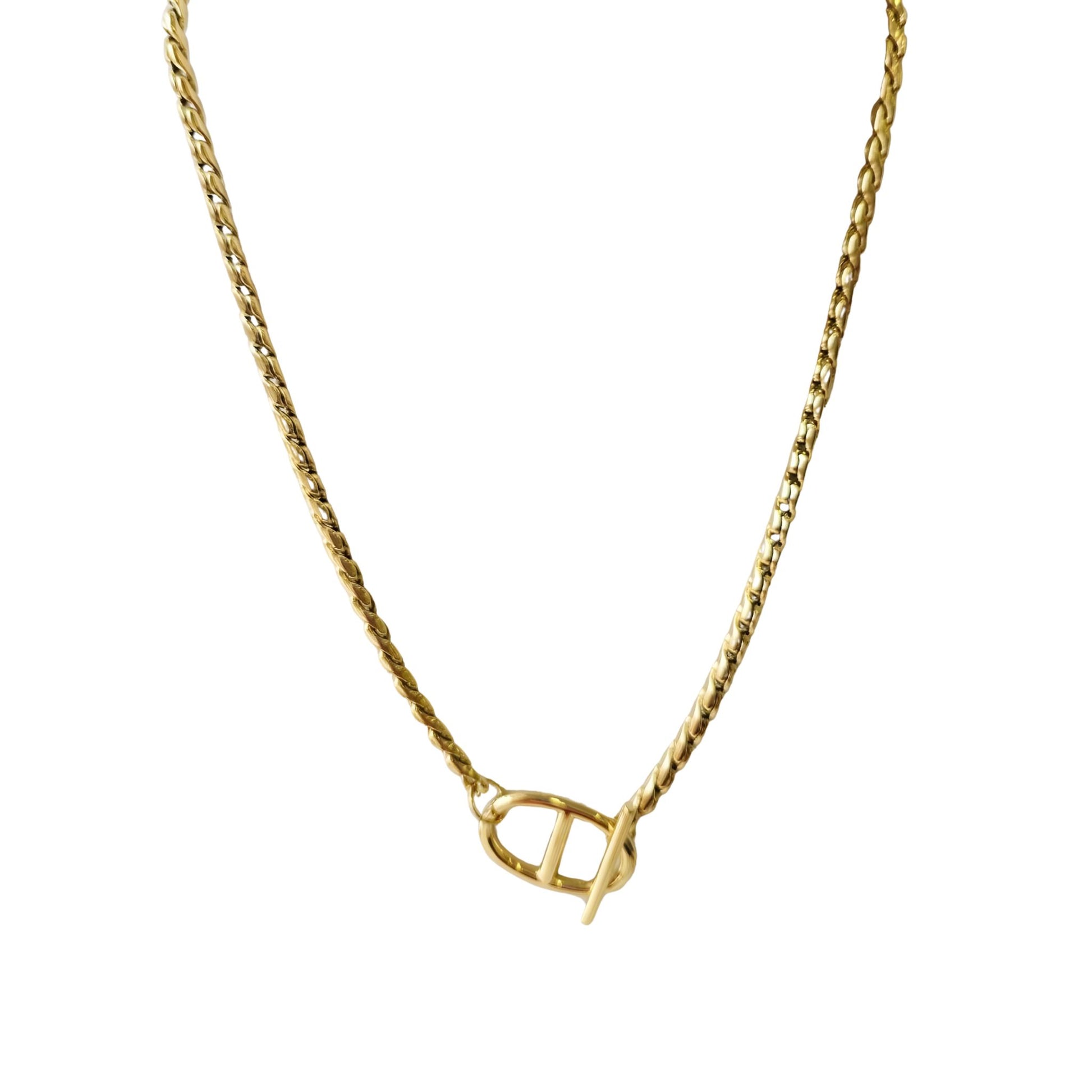 O fecho frontal estilo “T-Bar” confere um toque sofisticado e funcional, permitindo usar a peça sozinha ou combinada com outros colares para um look mais arrojado.