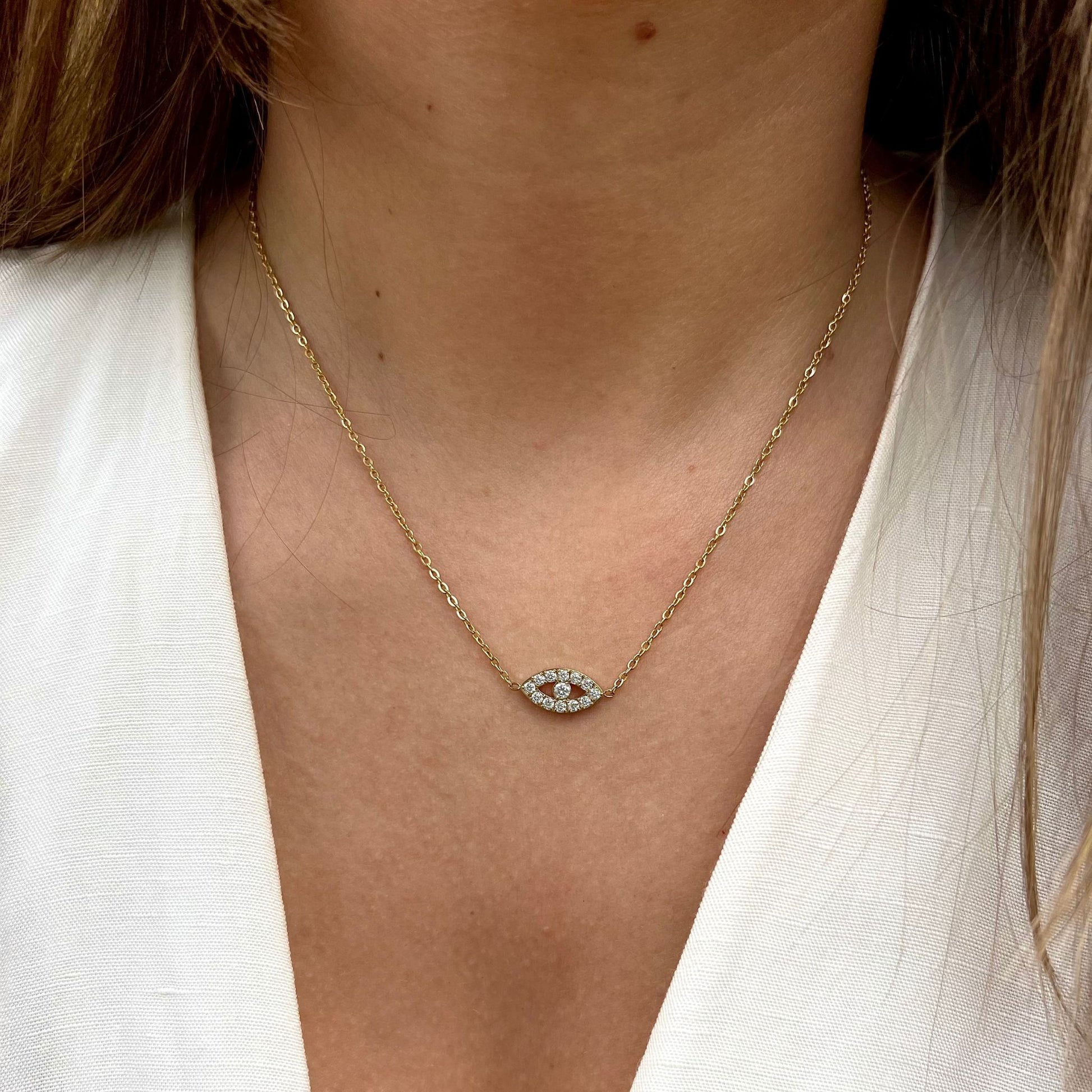 O olho turco é um amuleto conhecido por sua proteção contra energias negativas e mau-olhado. Neste colar, ele é representado de forma delicada e sofisticada, rodeado pelas brilhantes zircônias brancas que acrescentam um toque de glamour à peça.