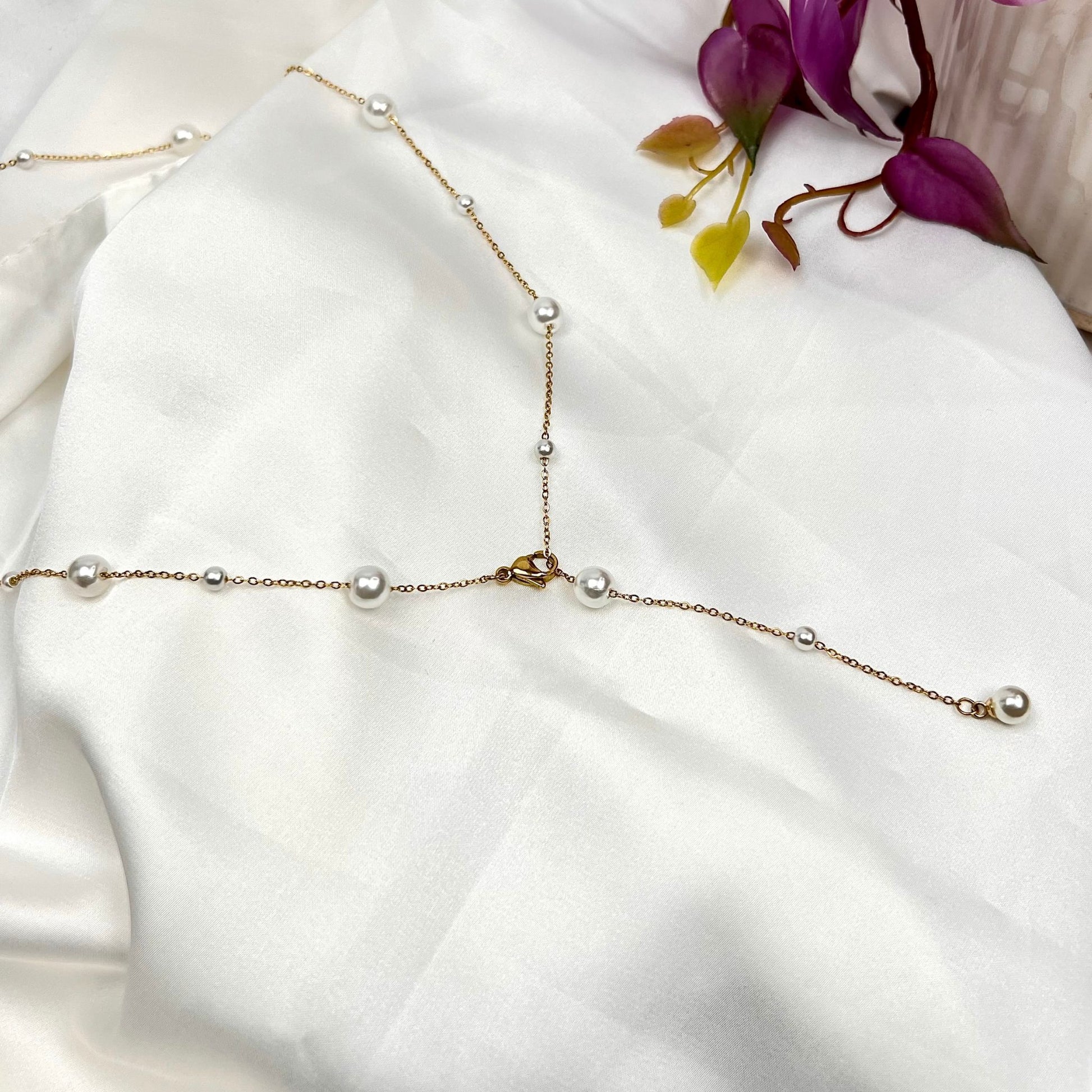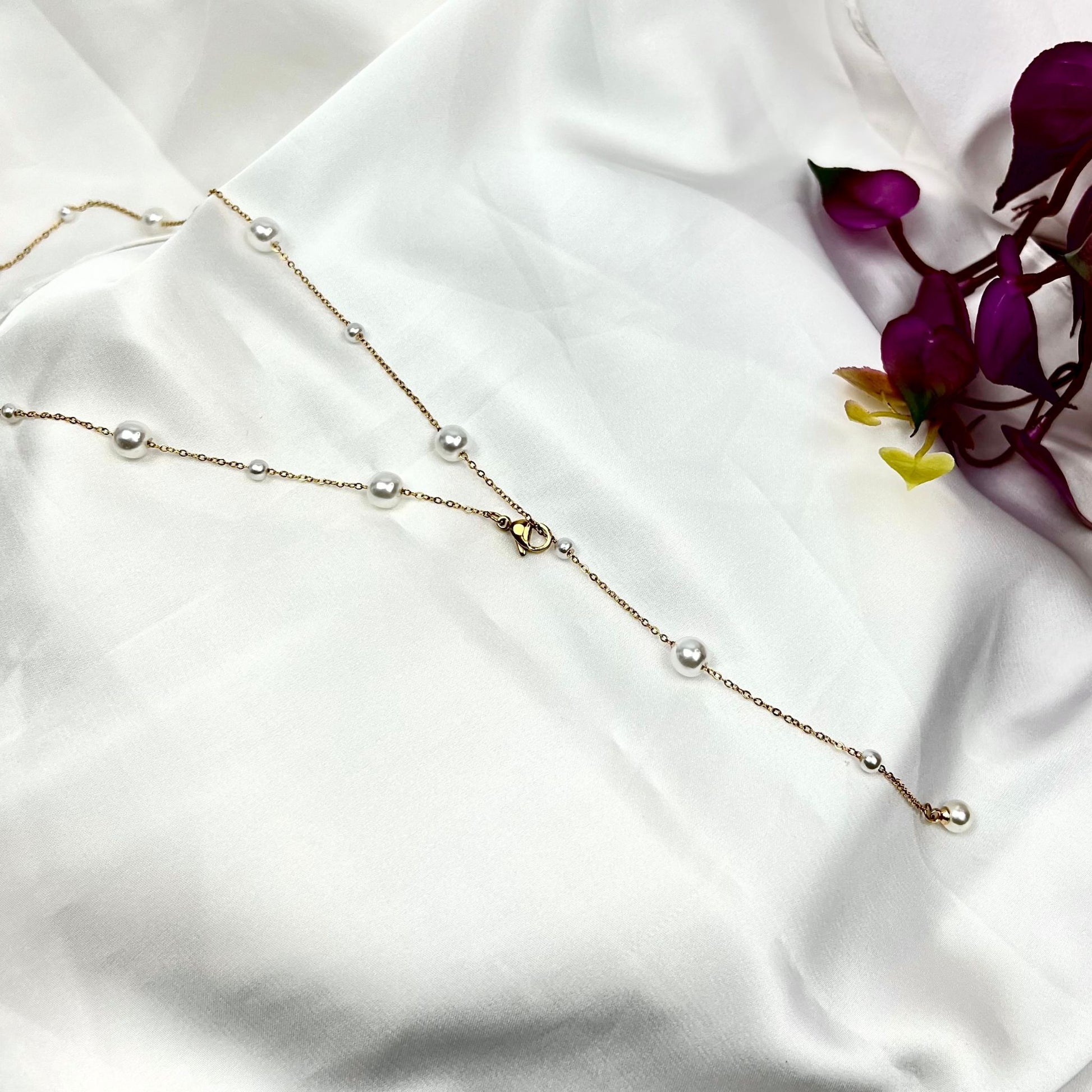 PAOLA | Colar em Pérolas com Pêndulo Ajustável em Aço Inoxidável
