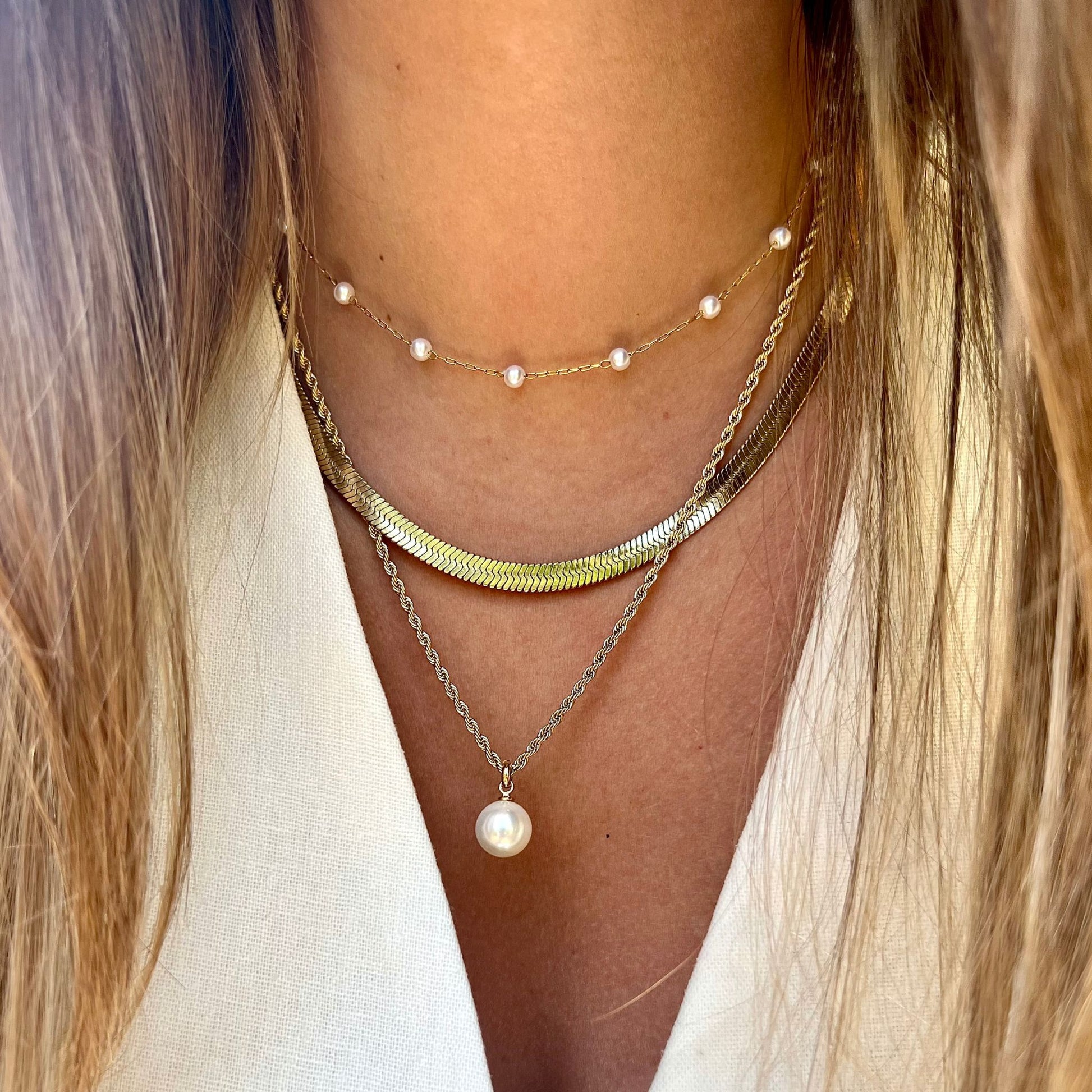 PEARL II | Colar em Malha Torcida com Pendente em Pérola em Aço Inoxidável