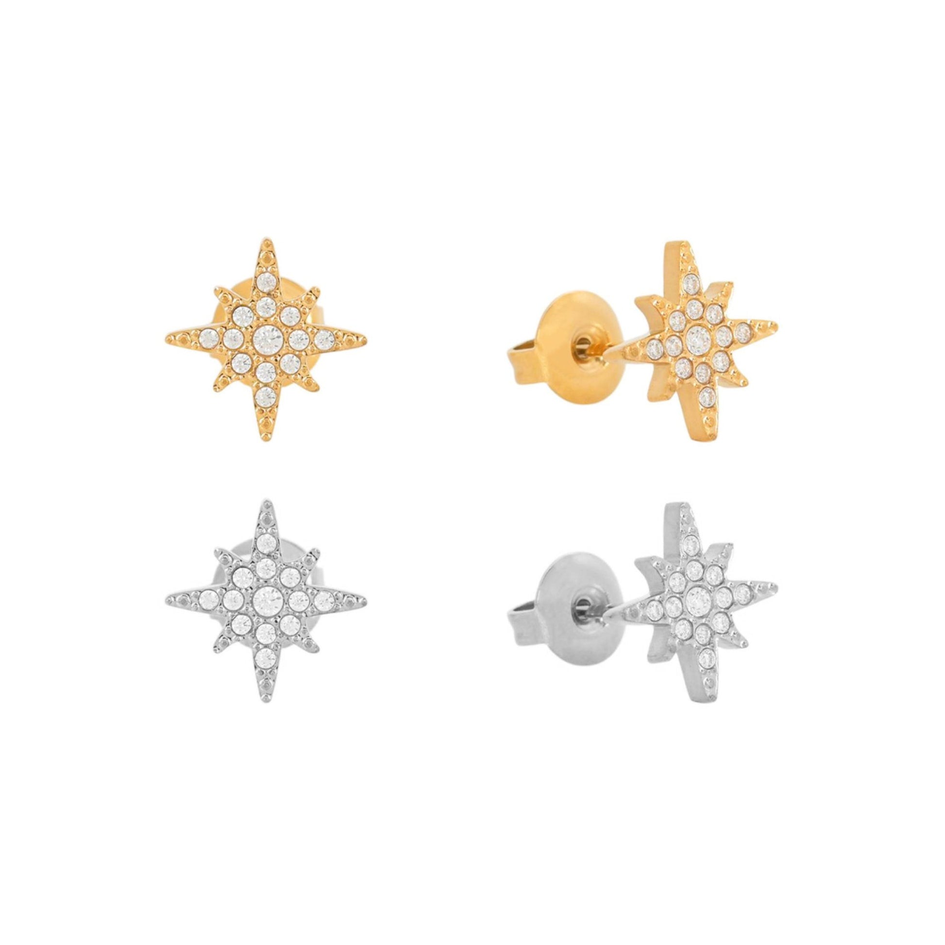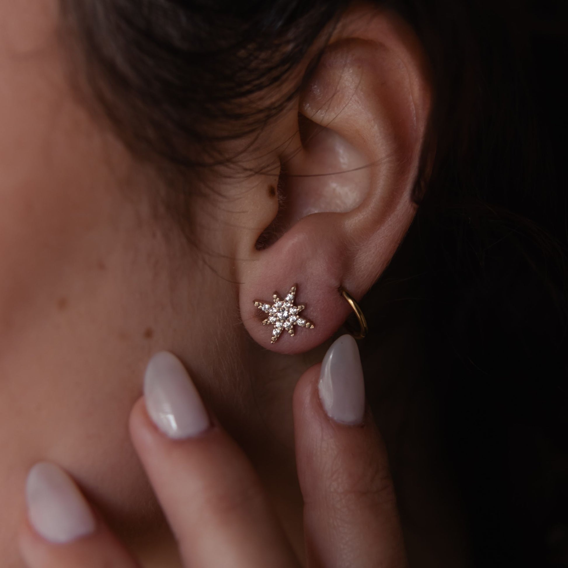 Os brincos STAR são o toque perfeito de brilho para o teu dia a dia. Com um design de estrela de oito pontas totalmente cravejada de zircônias, estes brincos curtos combinam delicadeza com um glamour discreto que nunca passa despercebido.