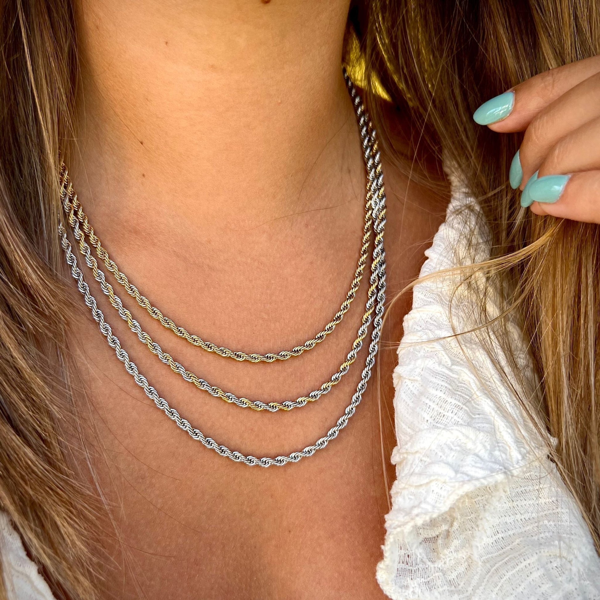 O colar STELLA II em malha torcida de 3mm em aço é a definição de versatilidade e elegância. Seja você uma pessoa que adora acessórios minimalistas ou alguém que gosta de ousar com camadas de jóias, este colar adapta-se perfeitamente ao seu estilo.