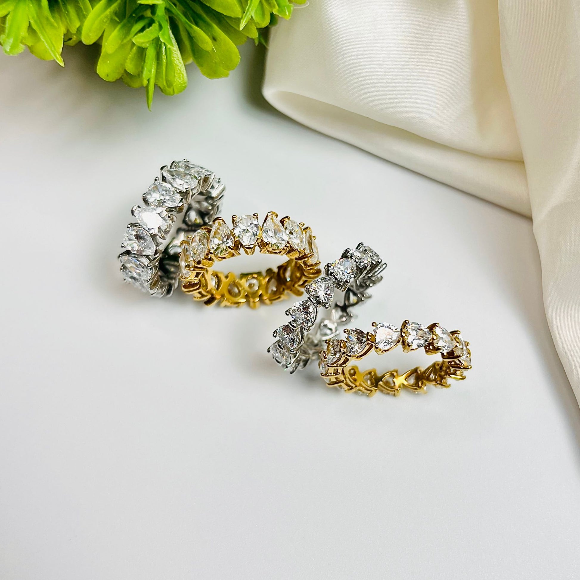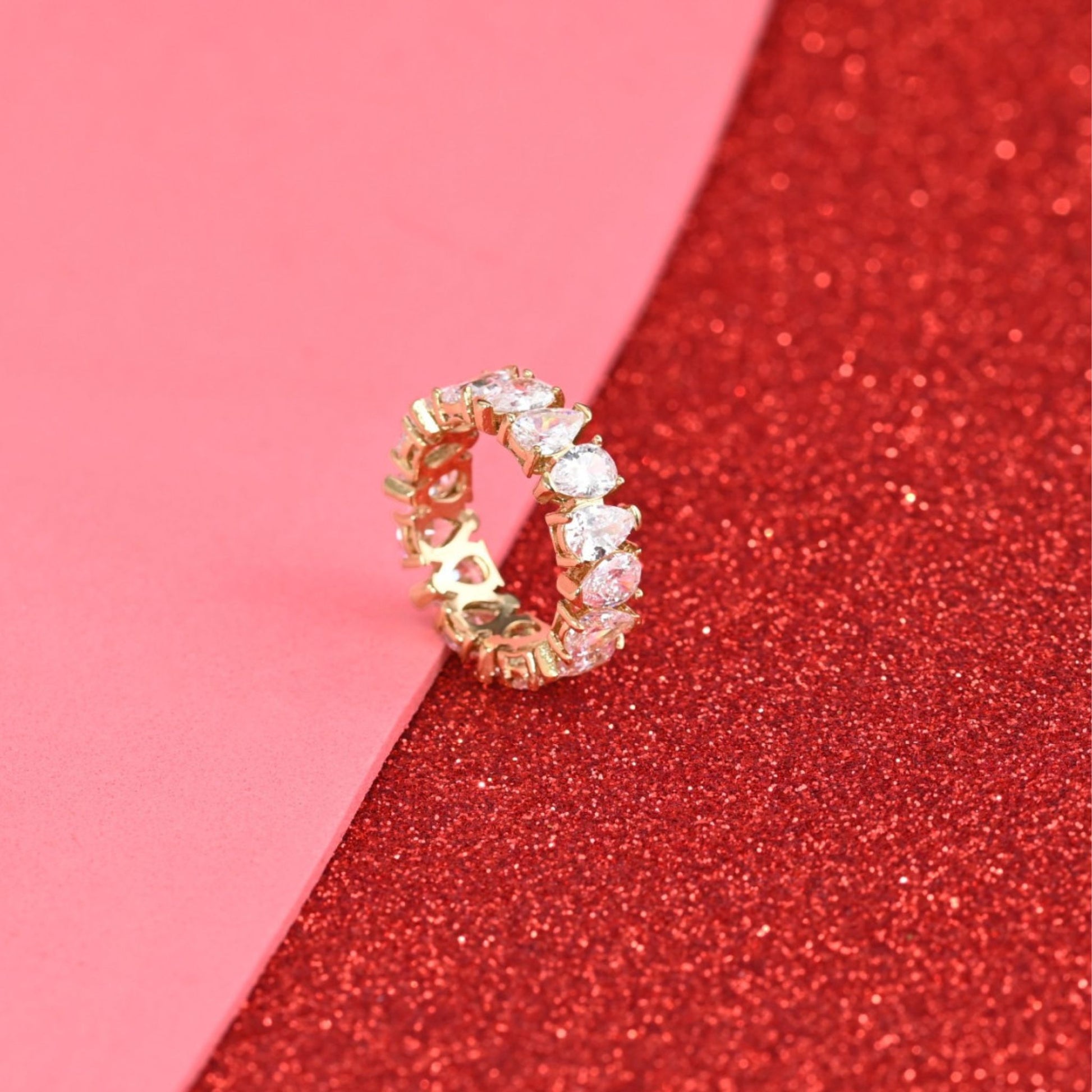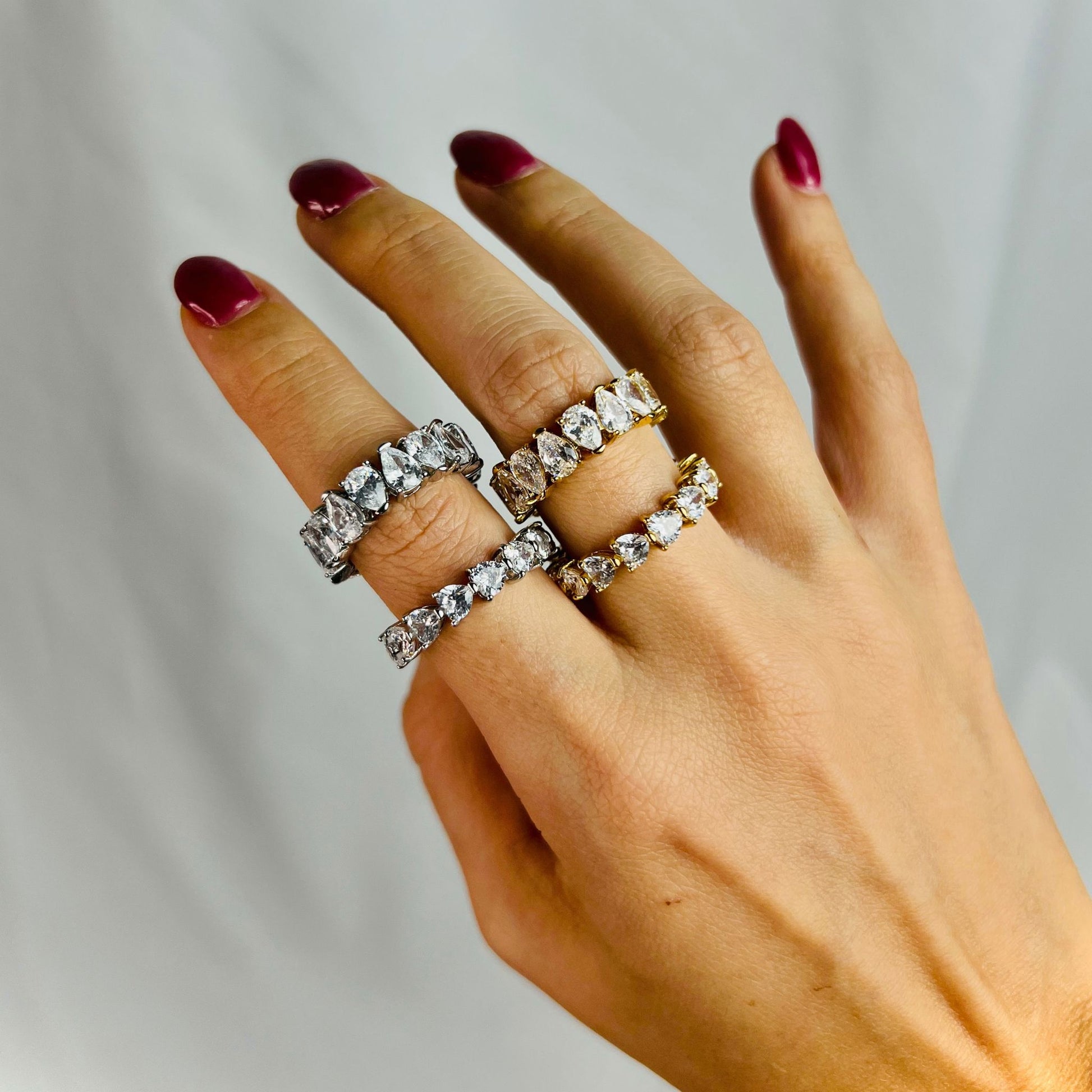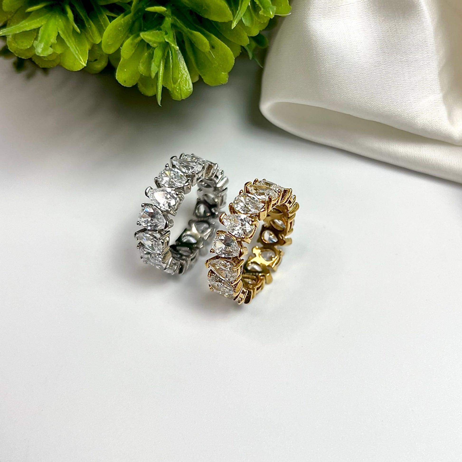 VALENTINA | Anel com Zircônias em Formato de Lágrima em Aço Inoxidável